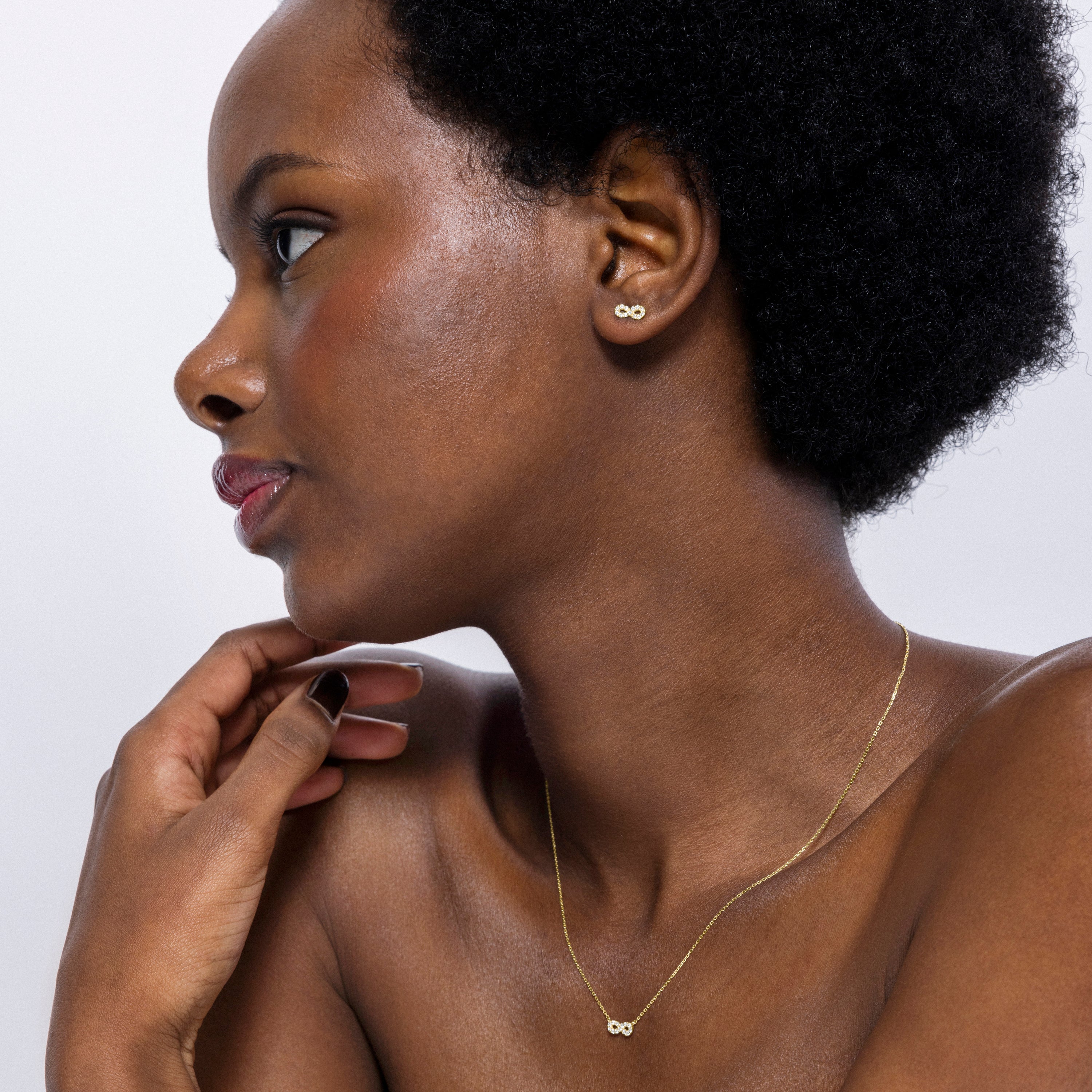 Collar Infinity oro de ley de 18k y diamantes libres de mineria. METAL: Oro macizo de 18K. PIEDRAS: Diamantes (Calidad D). QUILATES: 0,04. Nº DE PIEDRAS: 13. DIÁMETRO: 1,10 mm. PUREZA: VVS PESO: 1,44 gr.
