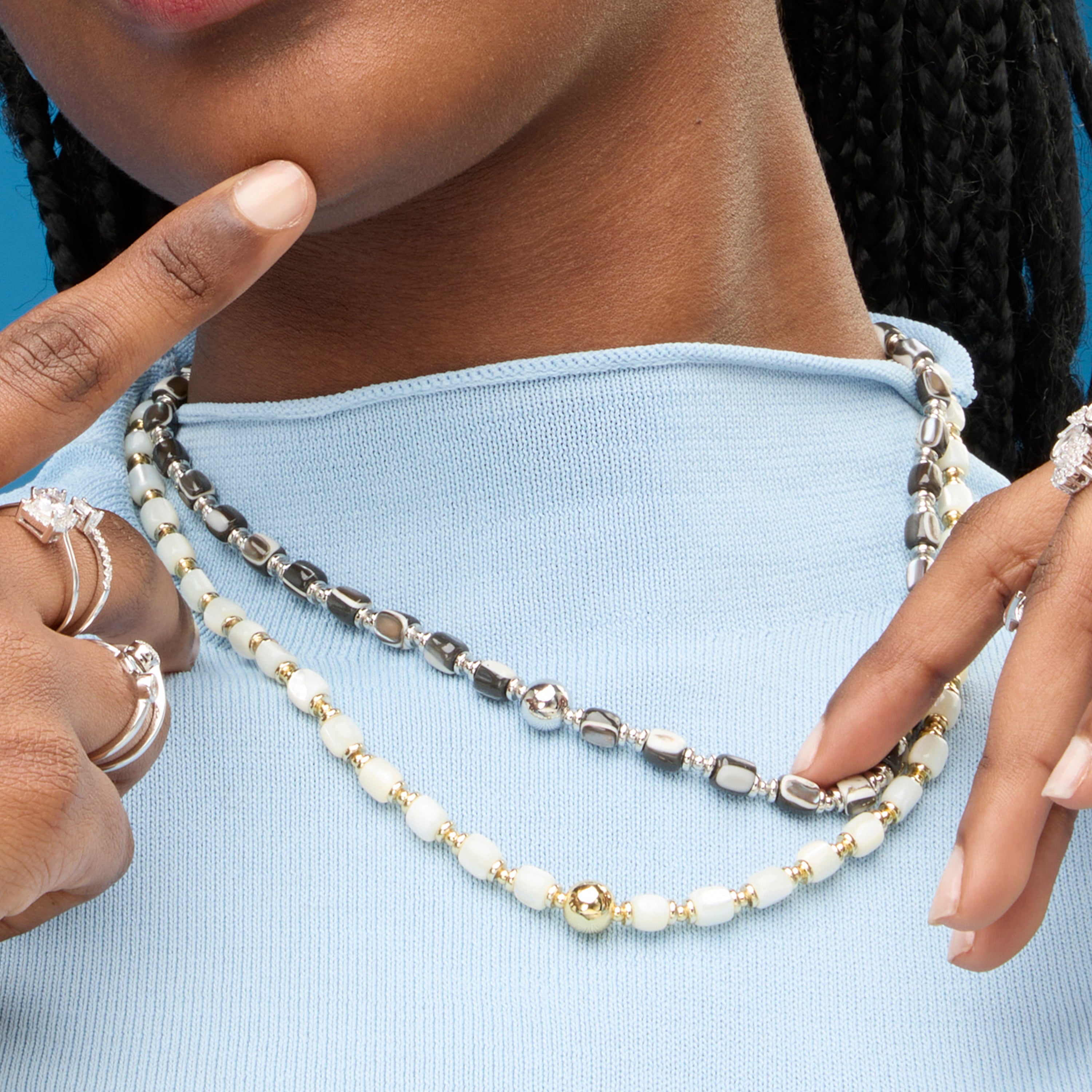 Collar Maddul cierre de Plata de Ley 925, abalorios de metal y Madreperla Blanca acabado en oro amarillo de 18k. Momentos para brillar combina a la perfección diseños que se resisten al paso del tiempo con joyas más innovadoras.Joyas elegantes y sofisticadas para brillar en ocasiones especiales.