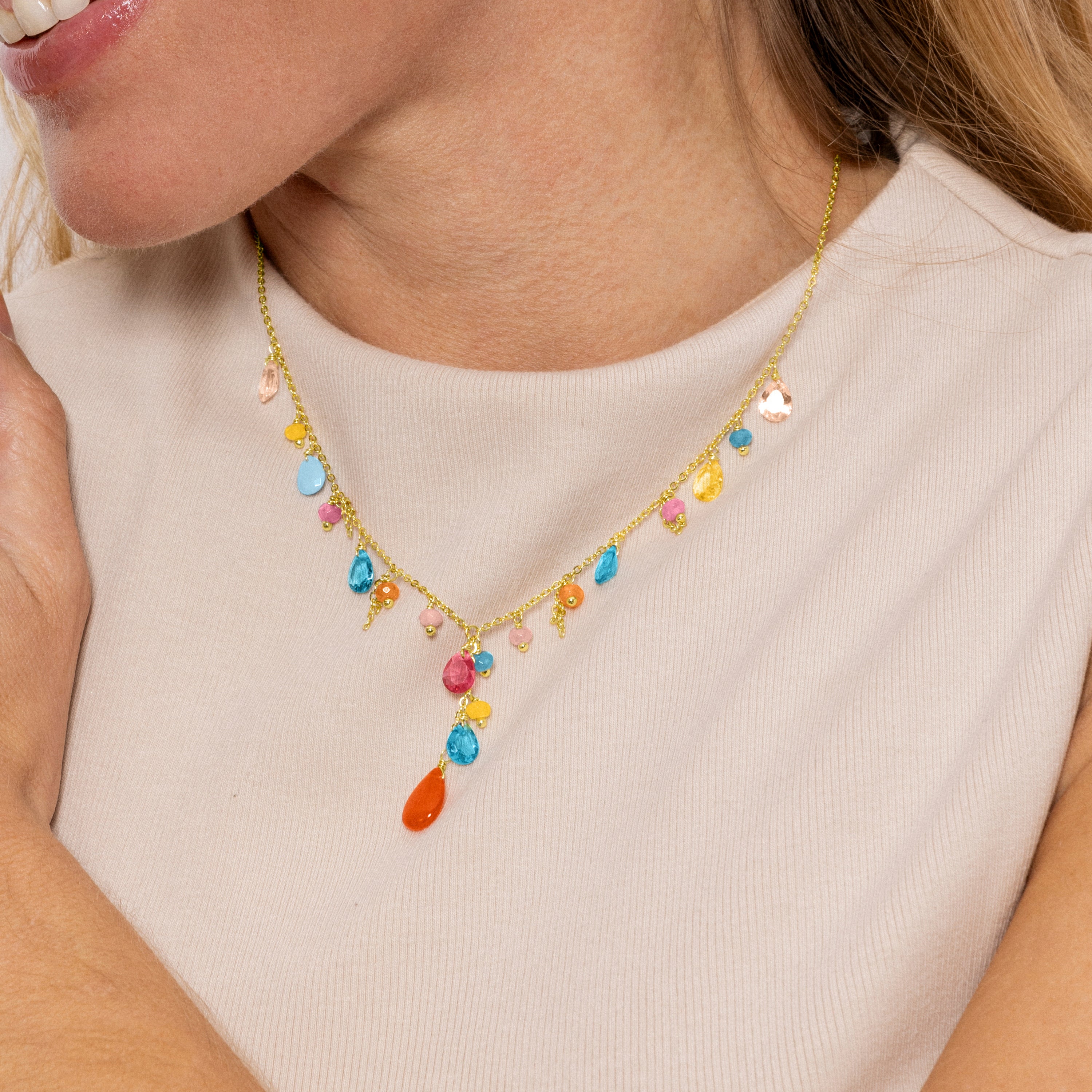 Collar de Plata de Ley 925 y Cristal Multicolor acabado en oro amarillo de 18k - Rioka