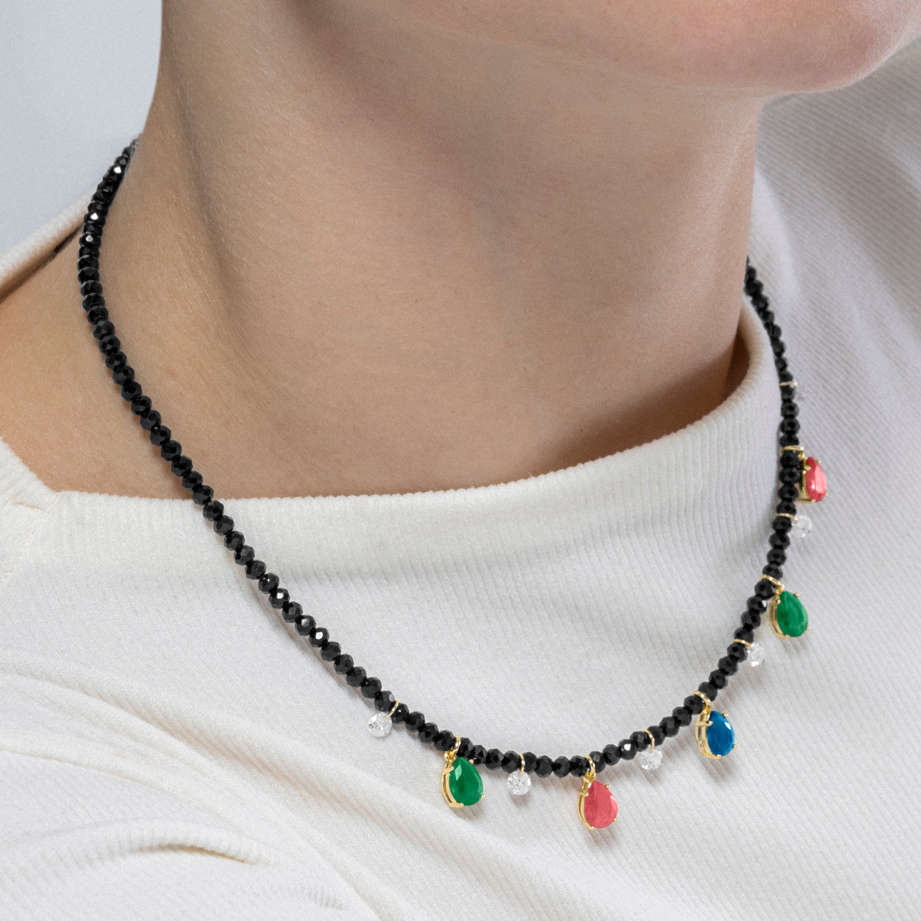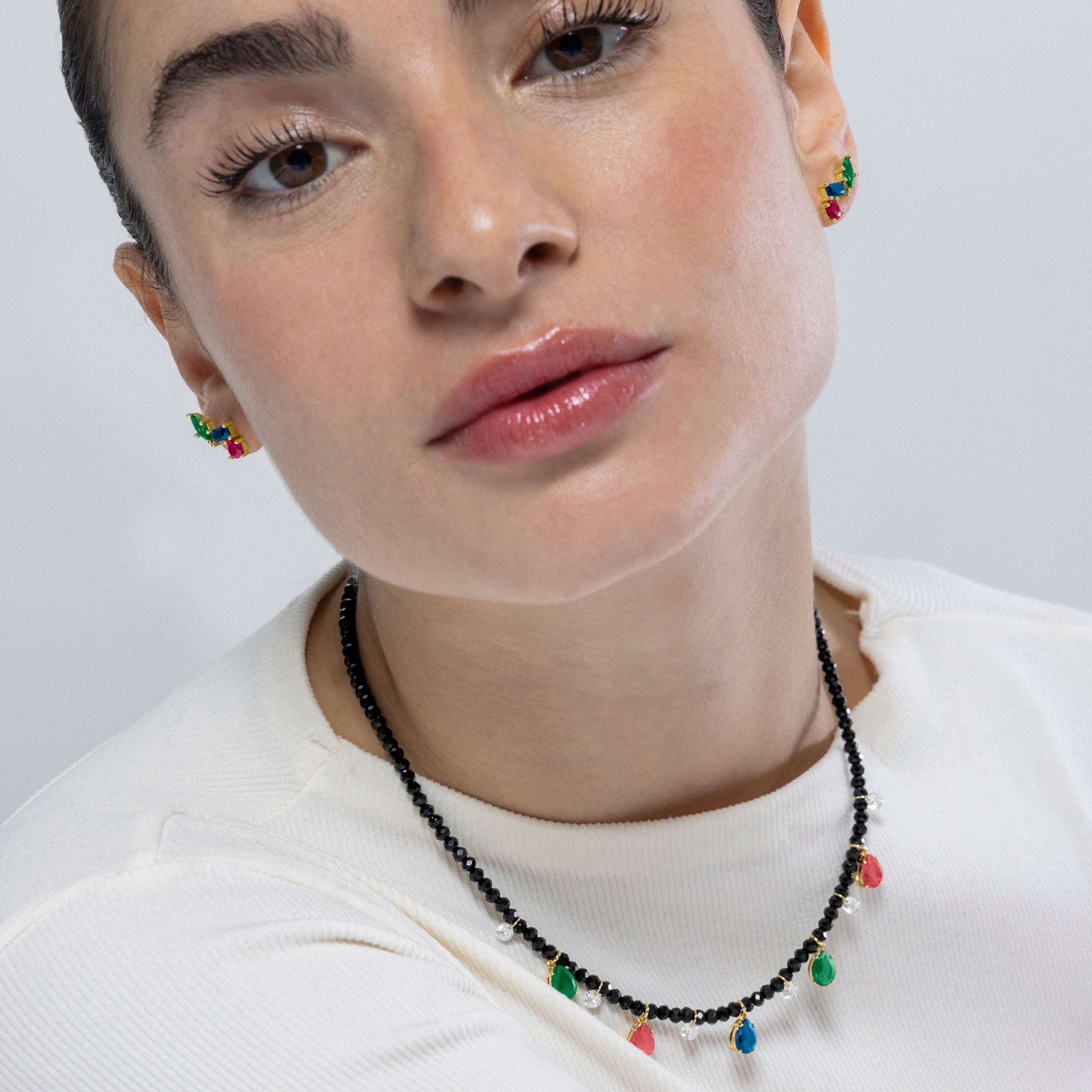 Collar de Plata de Ley 925 y Circonita Multicolor acabado en oro amarillo de 18k - Shion