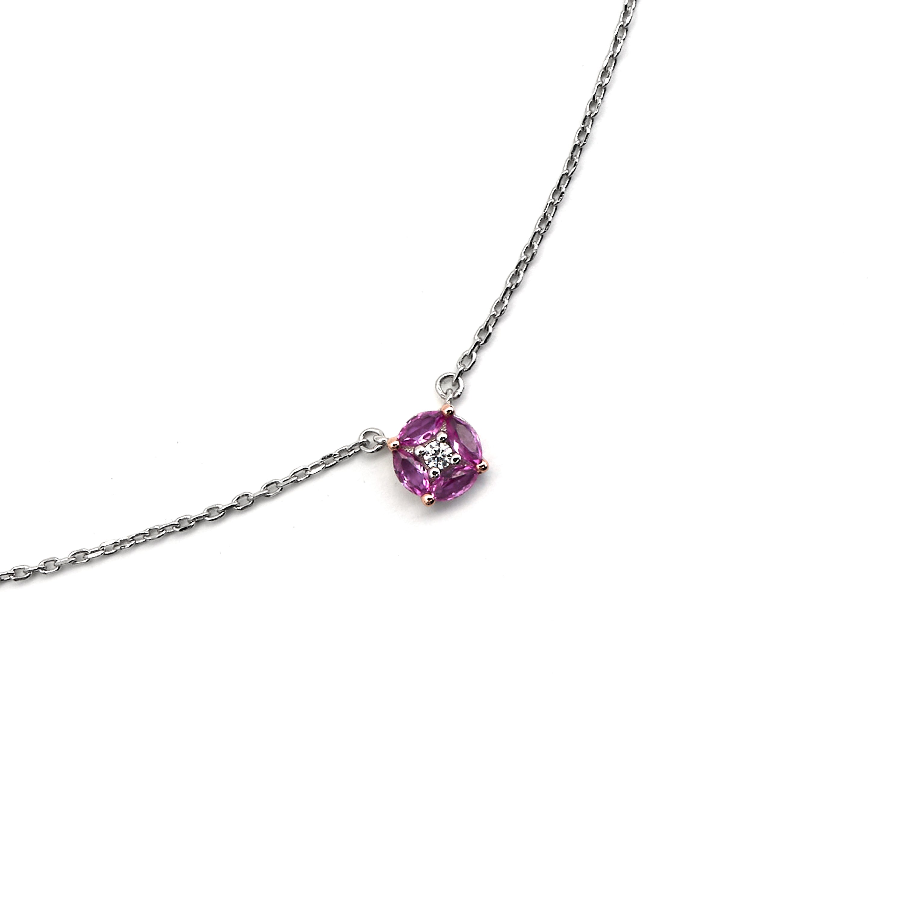 Collar de Plata de Ley 925 y Circonita Rosa acabado en rodio - Siankho