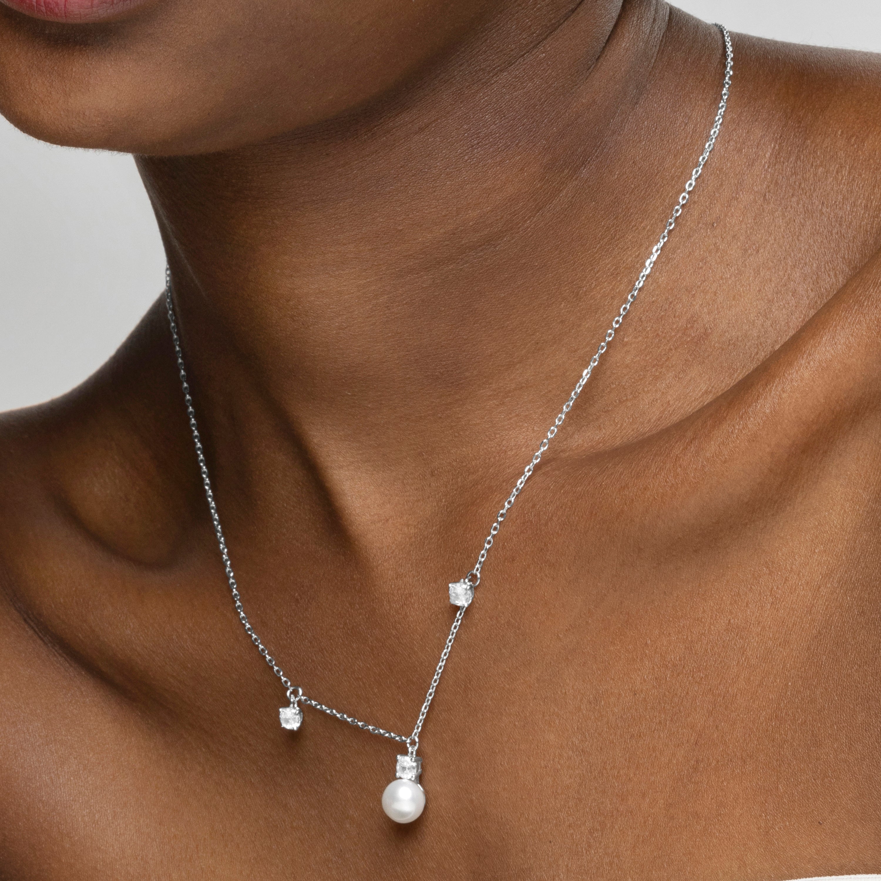 Collar de Plata de Ley 925 y Perla Blanca acabado en rodio - Valme