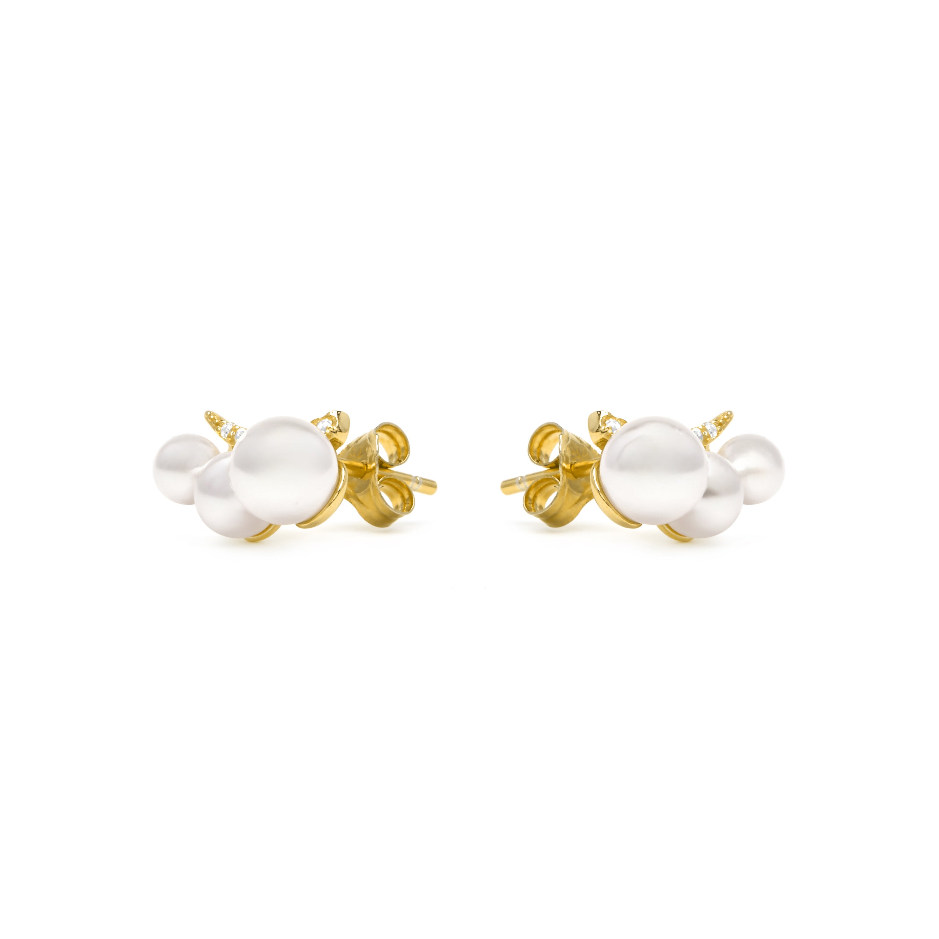 Pendientes Duslo de Plata de Ley 925 y Perla Blanca acabado en Oro Amarillo 18k