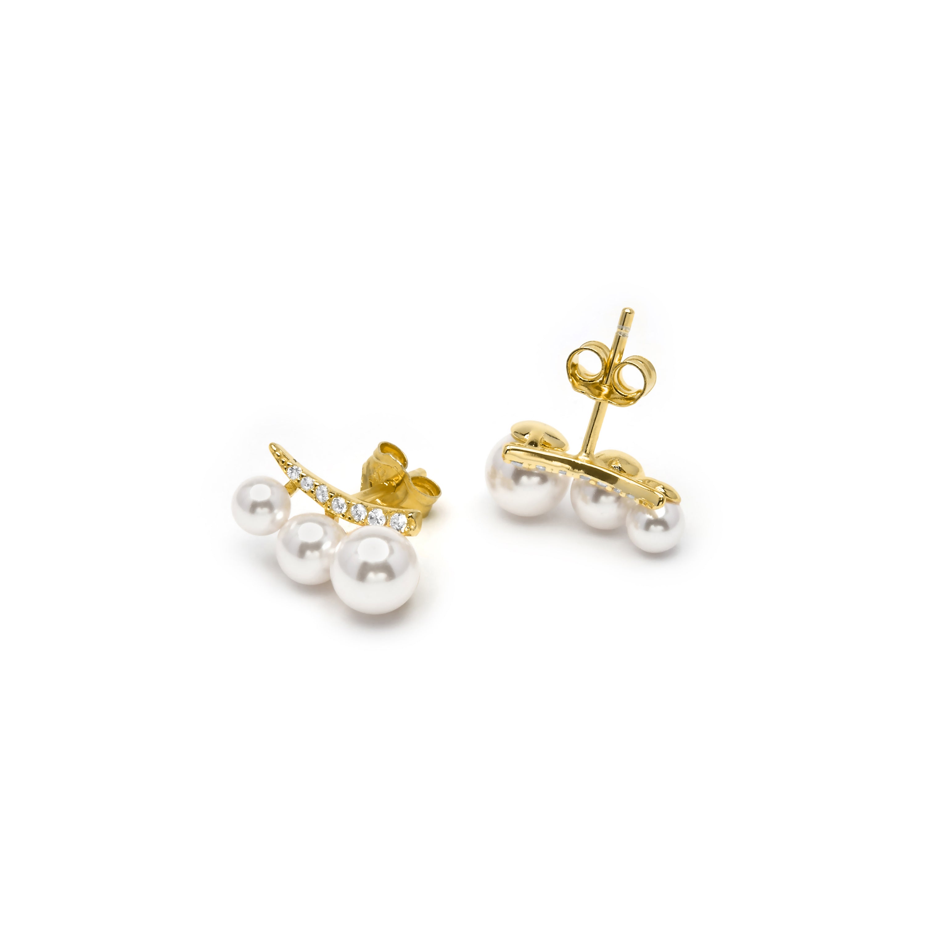 Pendientes de Plata de Ley 925 y Perla Blanca acabado en oro amarillo 18k - Duslo