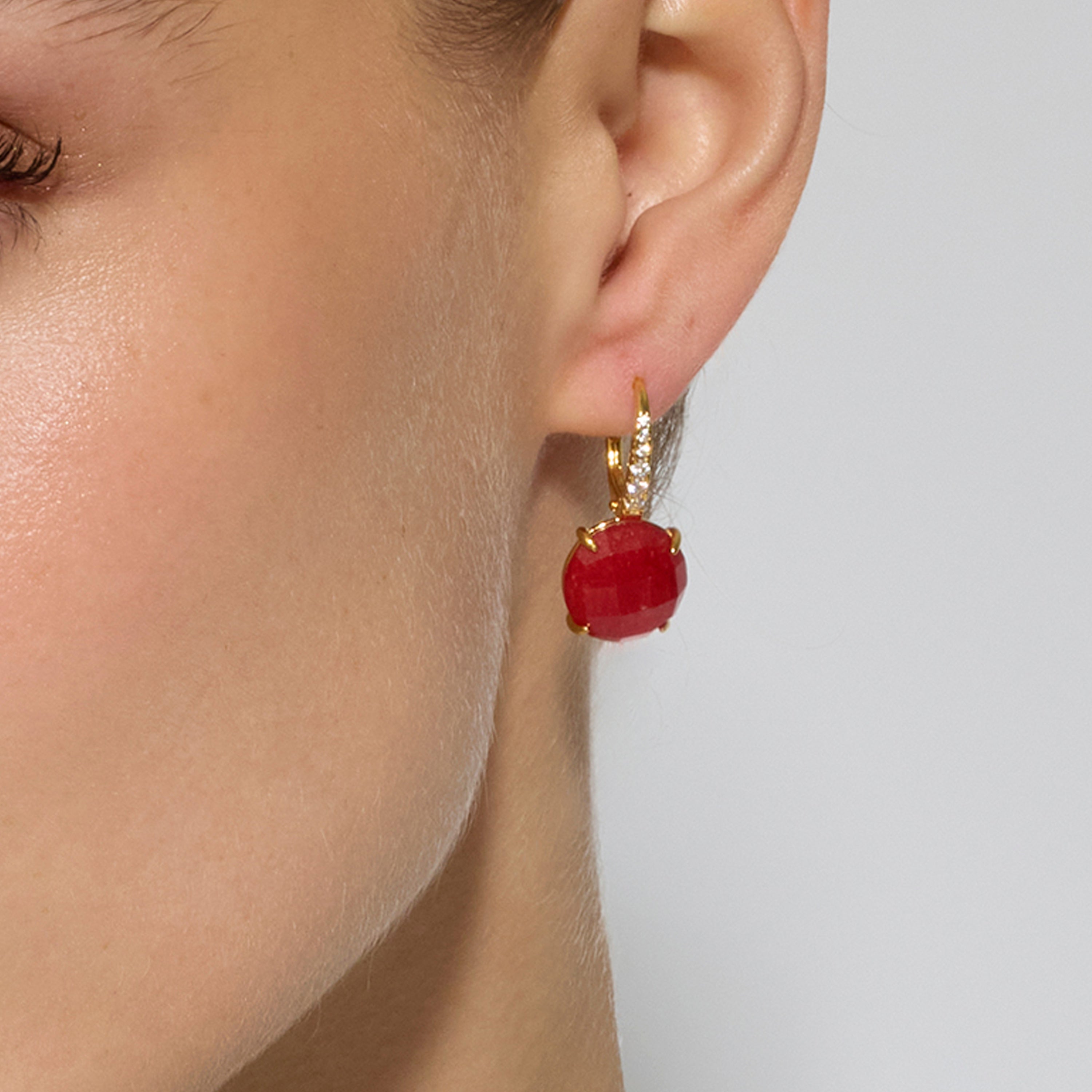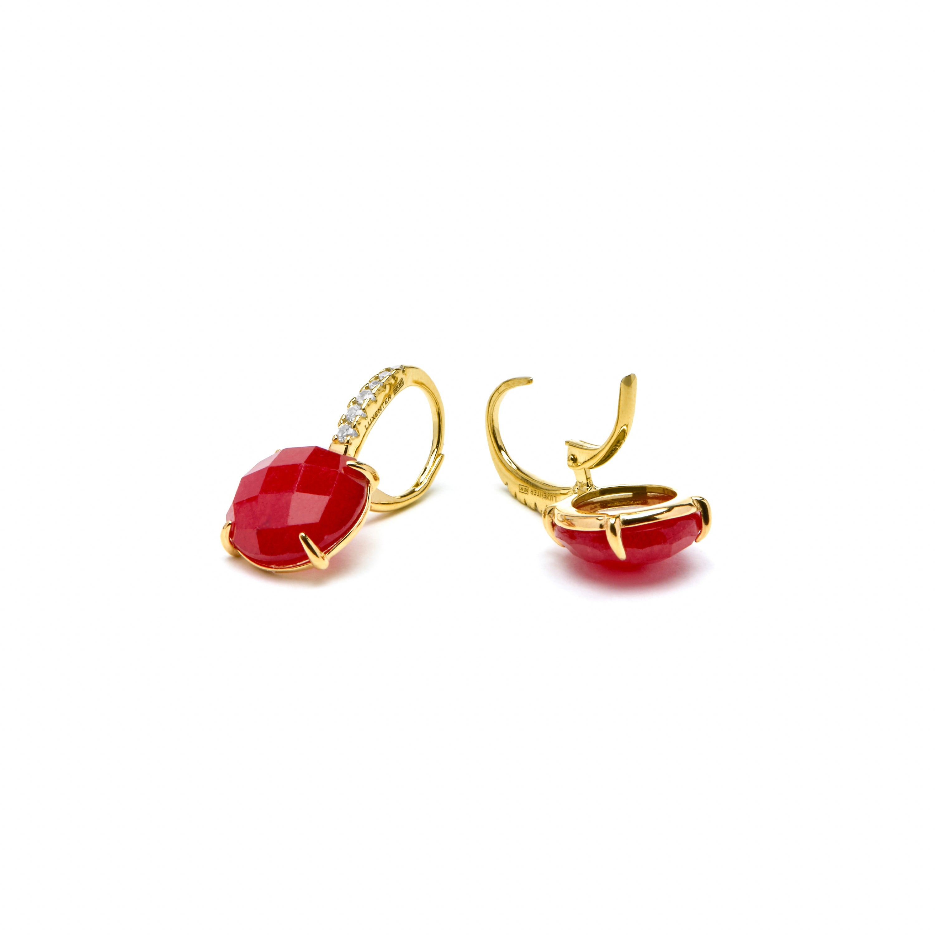 Pendientes Lior de Plata de Ley 925 y Jade Rojo acabado oro amarillo de 18k