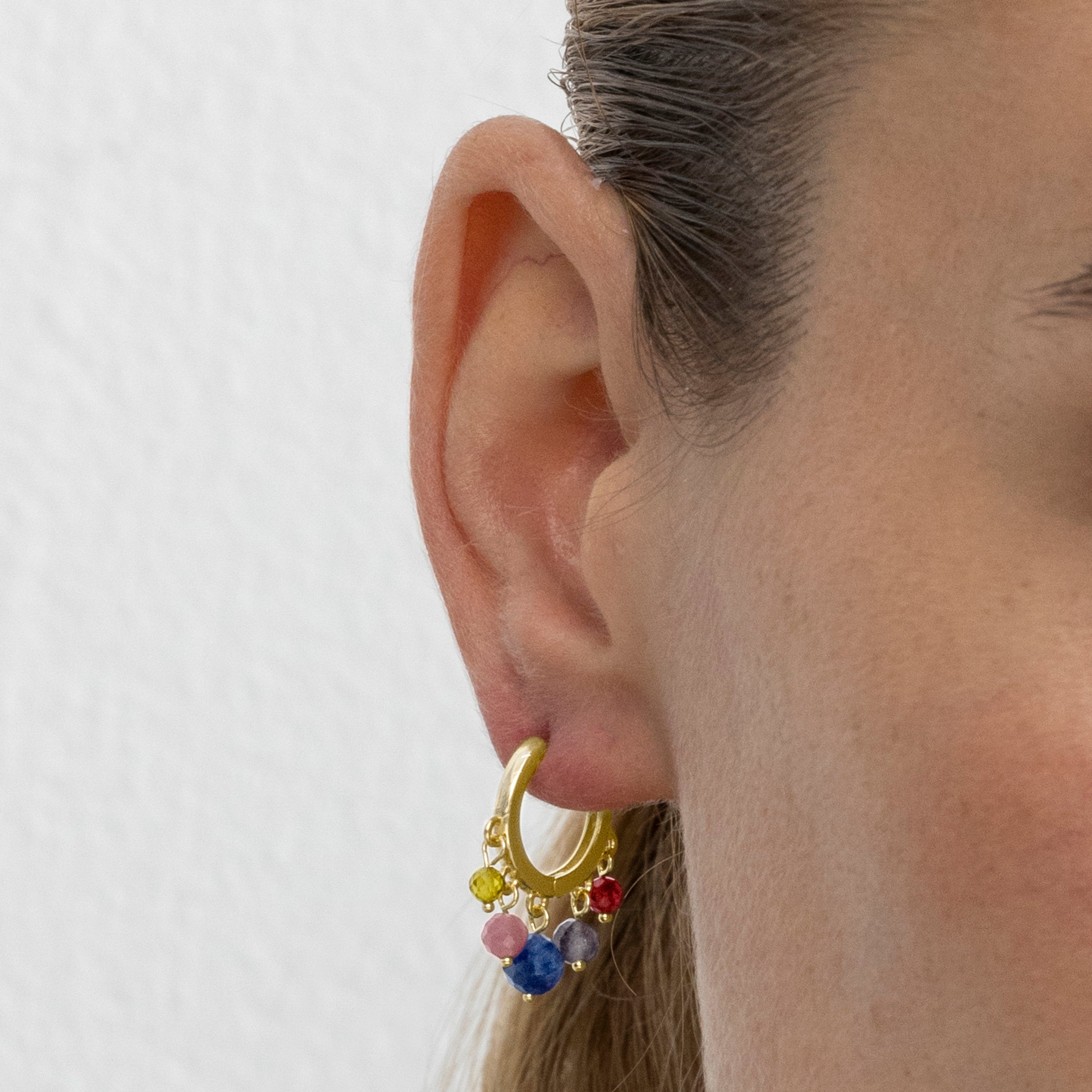 Pendientes Tefilo de Plata de Ley 925 y Cristal Multicolor acabado oro 18k. Pide un deseo se caracteriza por diseños de carácter joven, repletos de significado y color, originales a la vez que discretos, que pretenden convertirse en pequeños amuletos.