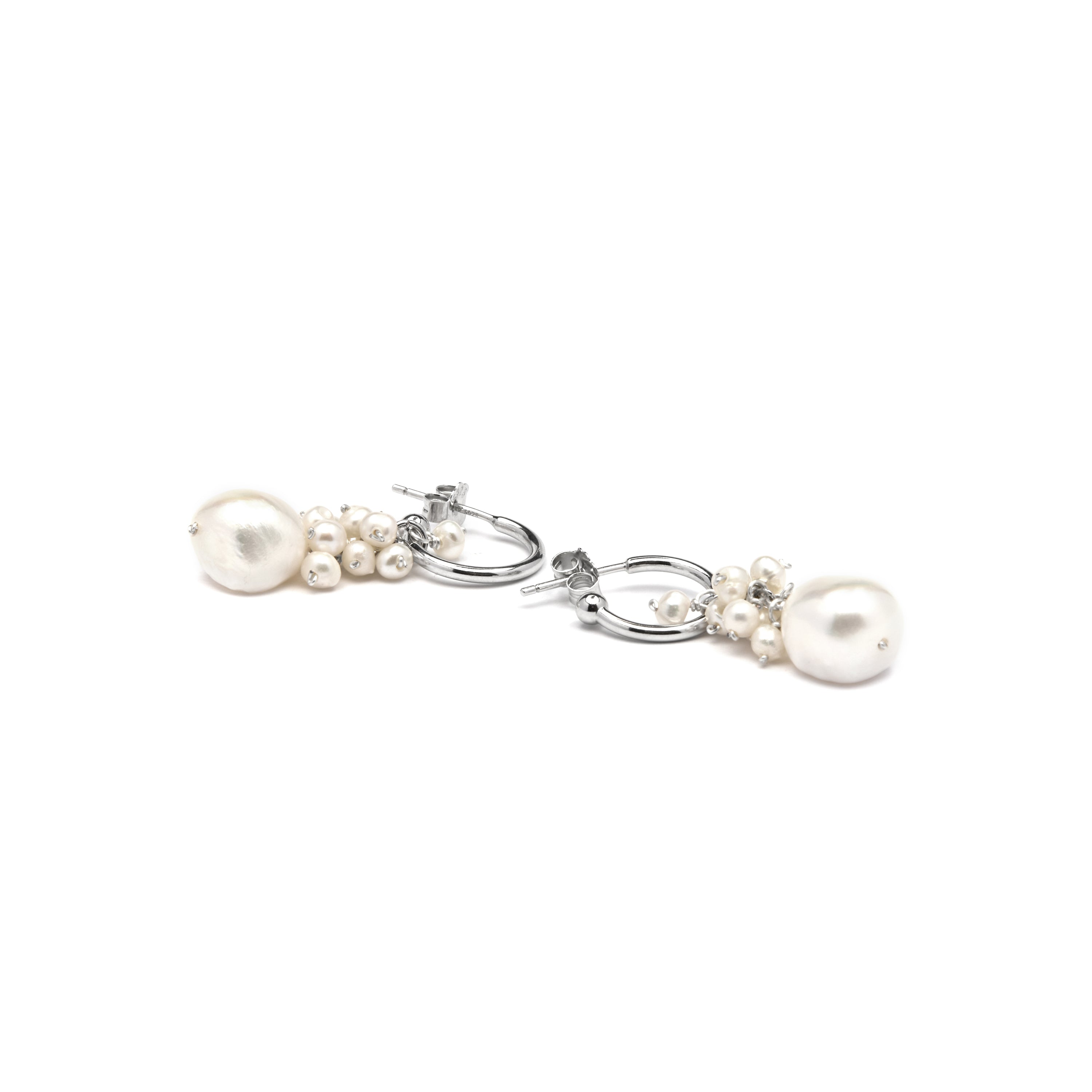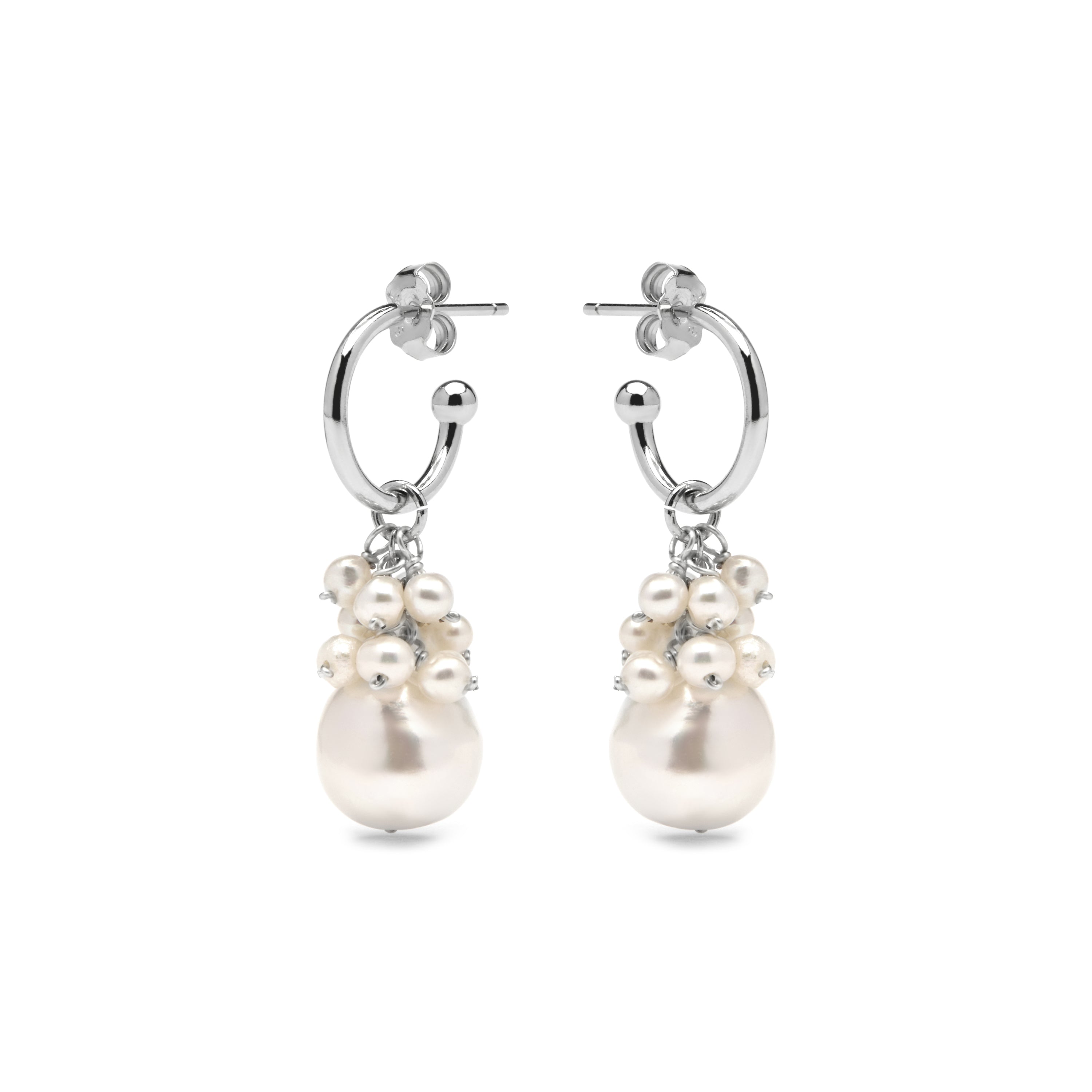 Pendientes Zoqoyi de Plata de Ley 925 y Perla Blanca acabado rodio