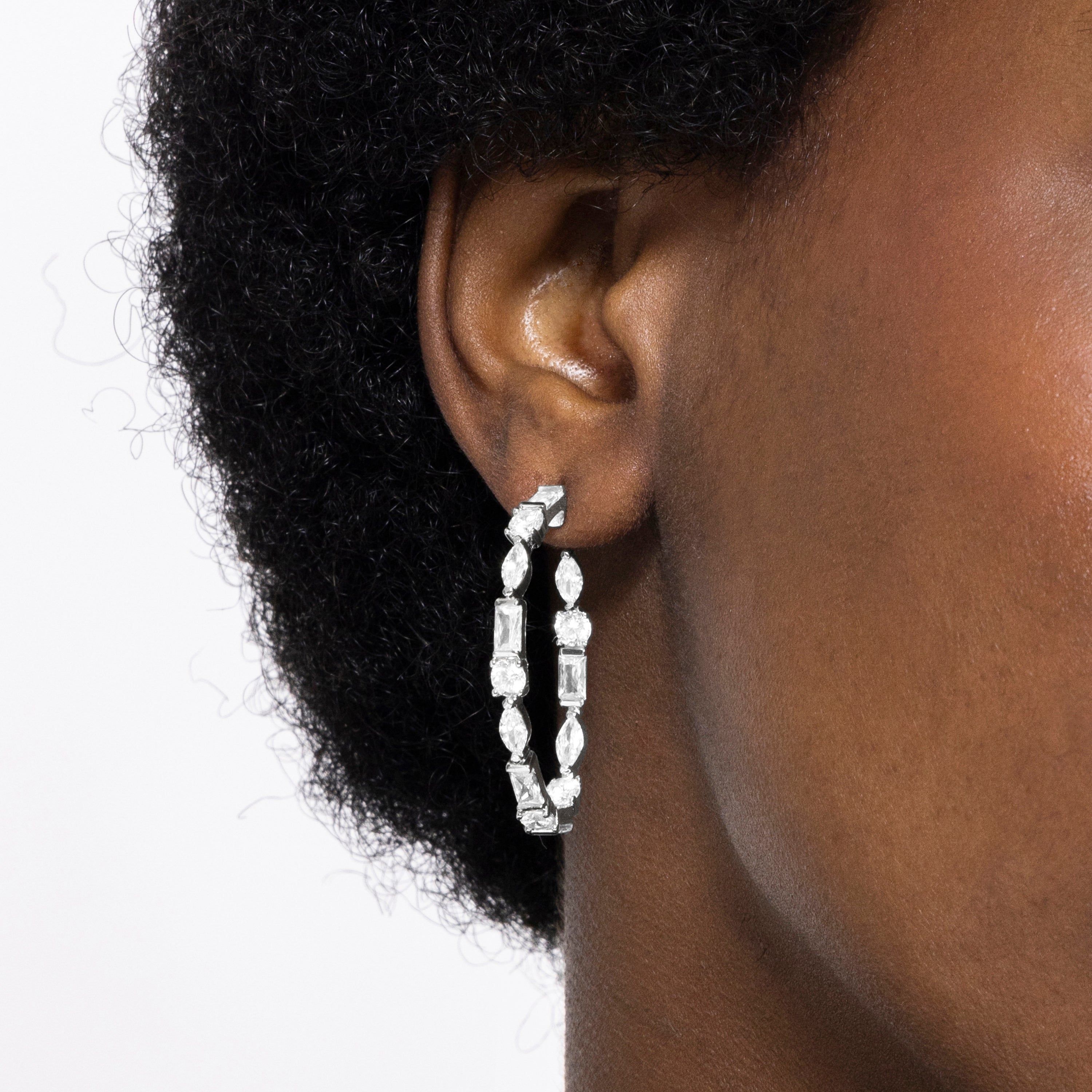 Aros grimchi de plata de ley 925 y circonita brillante con acabado en baño de rodio. Momentos para brillar combina a la perfección diseños que se resisten al paso del tiempo con joyas más innovadoras. Joyas elegantes y sofisticadas para brillar en ocasiones especiales.