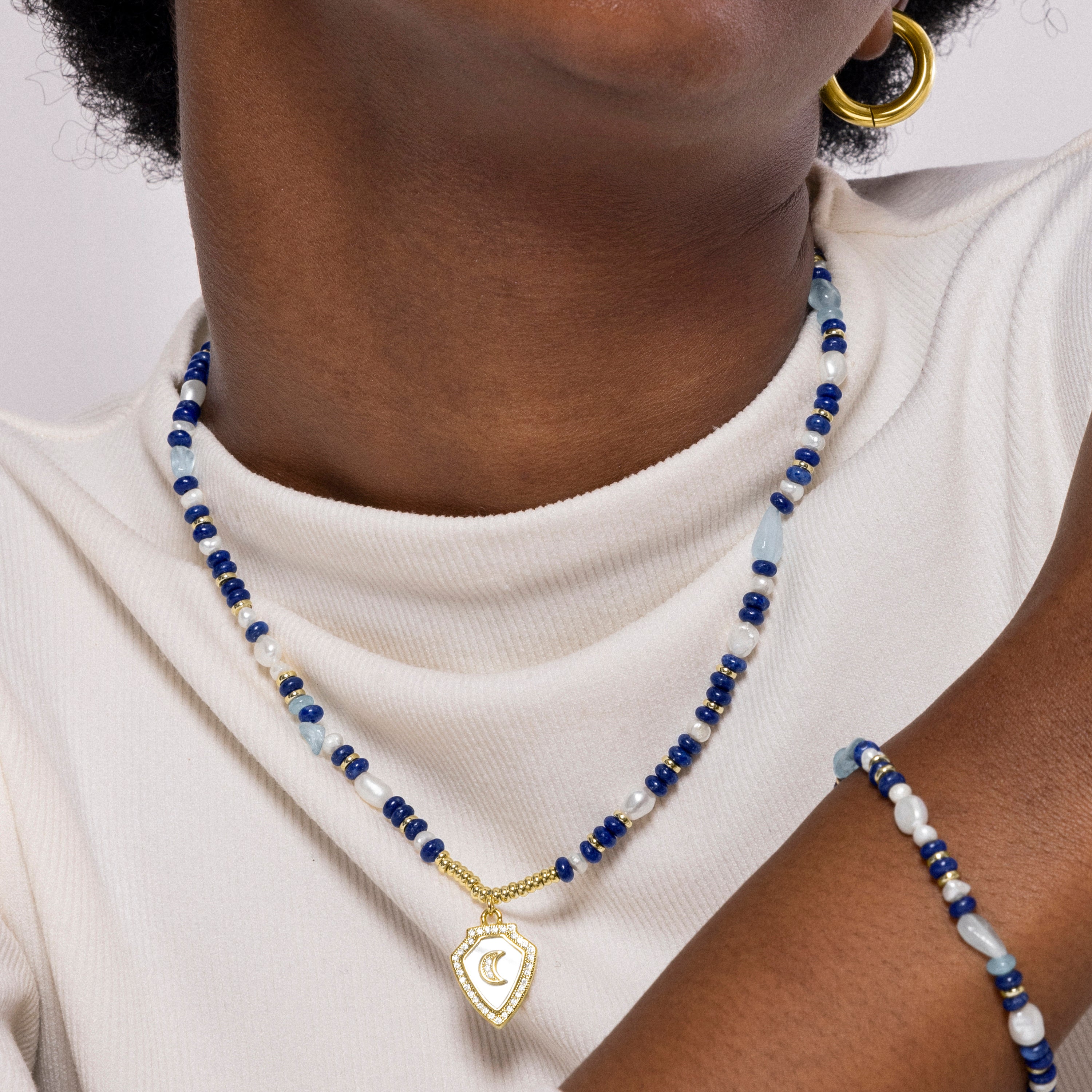 Collar de Plata de Ley 925 y Lapislazuli Natural acabado en oro amarillo de 18k - Menya