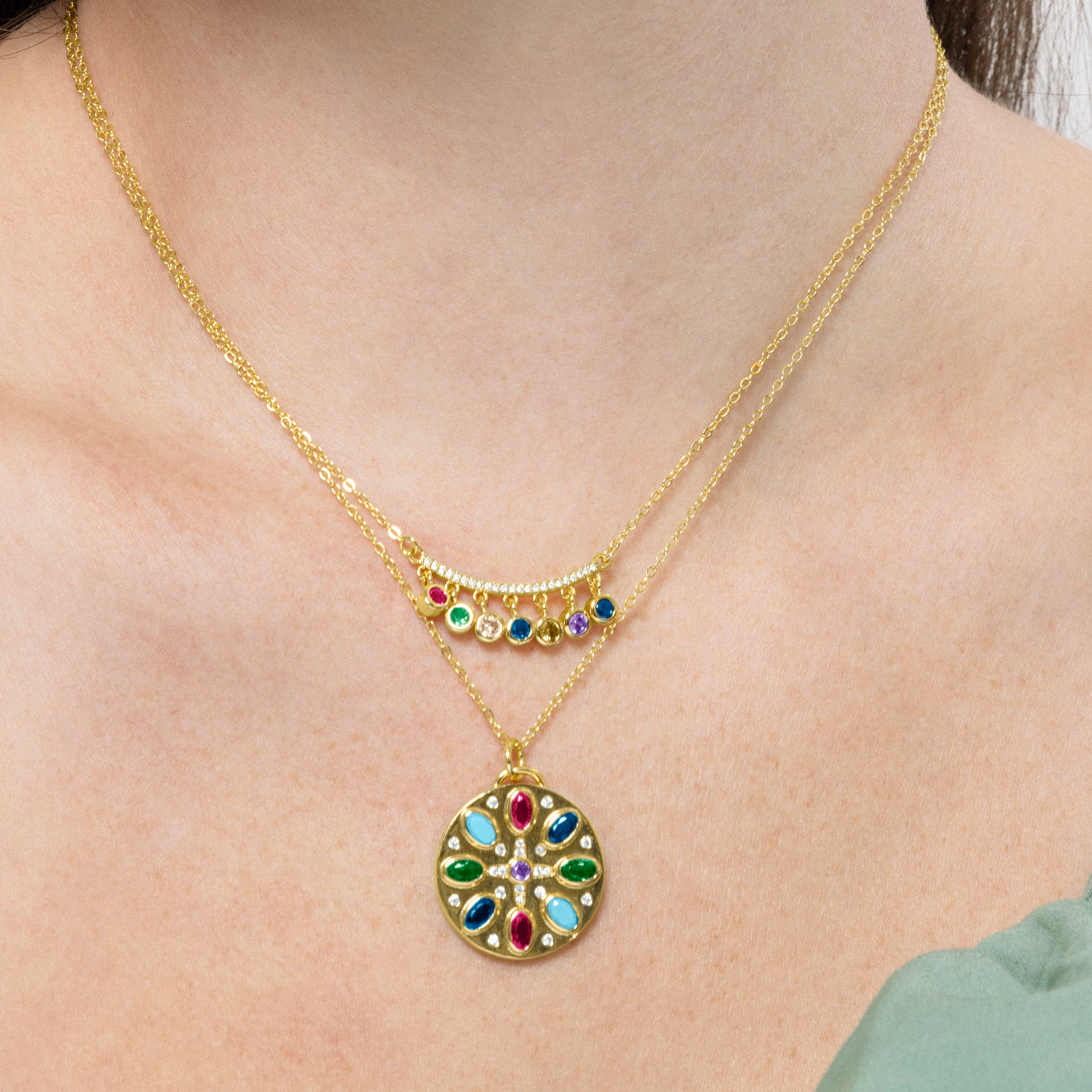 Collar de Plata de Ley 925 y Circonita Multicolor acabado en oro amarillo de 18k - Vithea