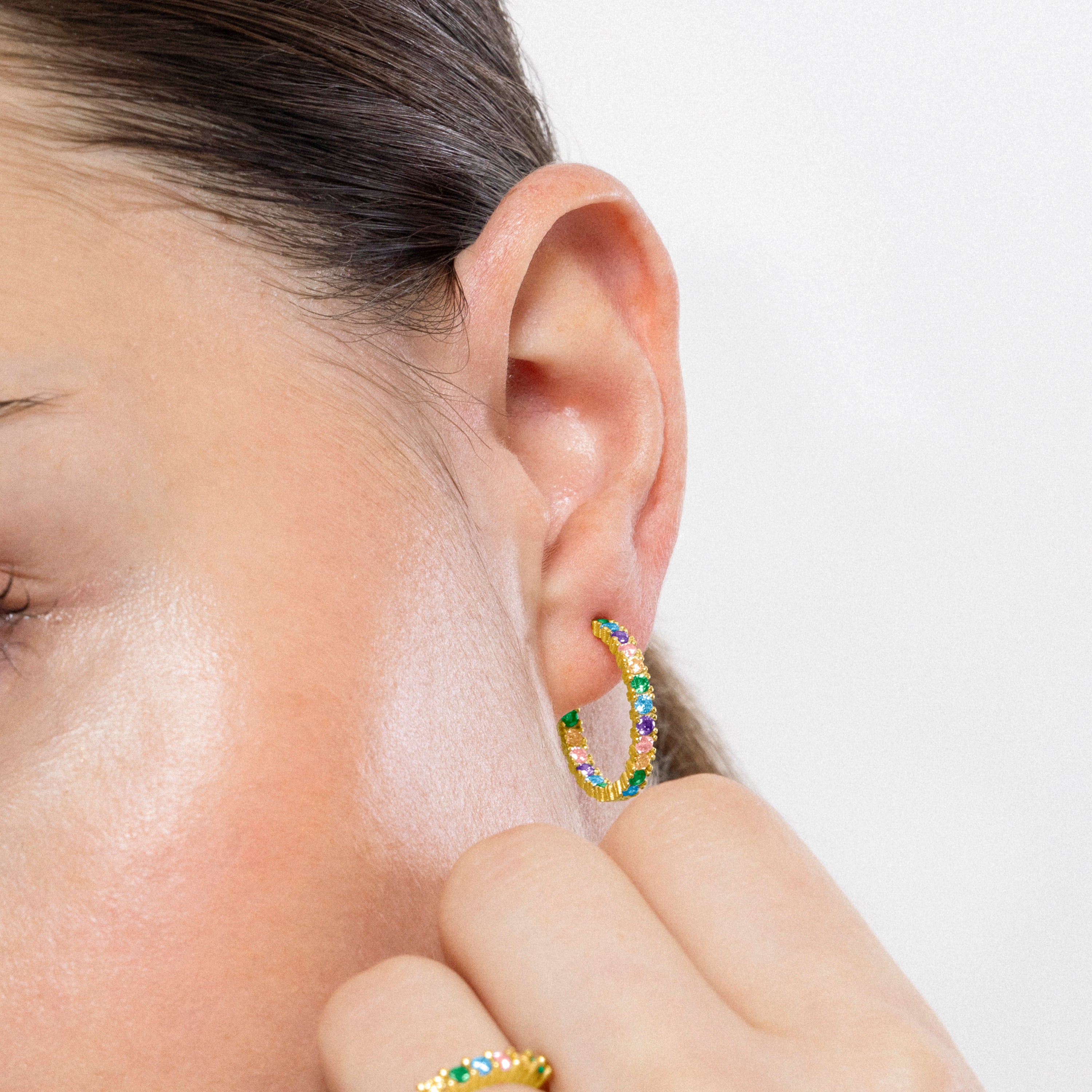 Pendientes de Plata de Ley 925 y Circonita Multicolor acabados en oro amarillo de 18k - Iotha