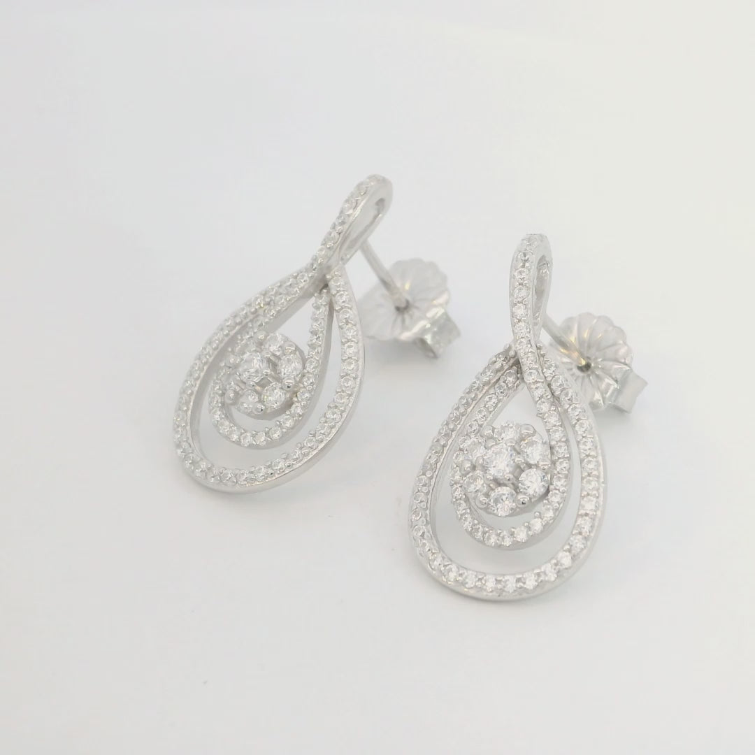 Boucles d'oreilles en argent sterling 925 et zircon brillant finition rhodium - Isloth