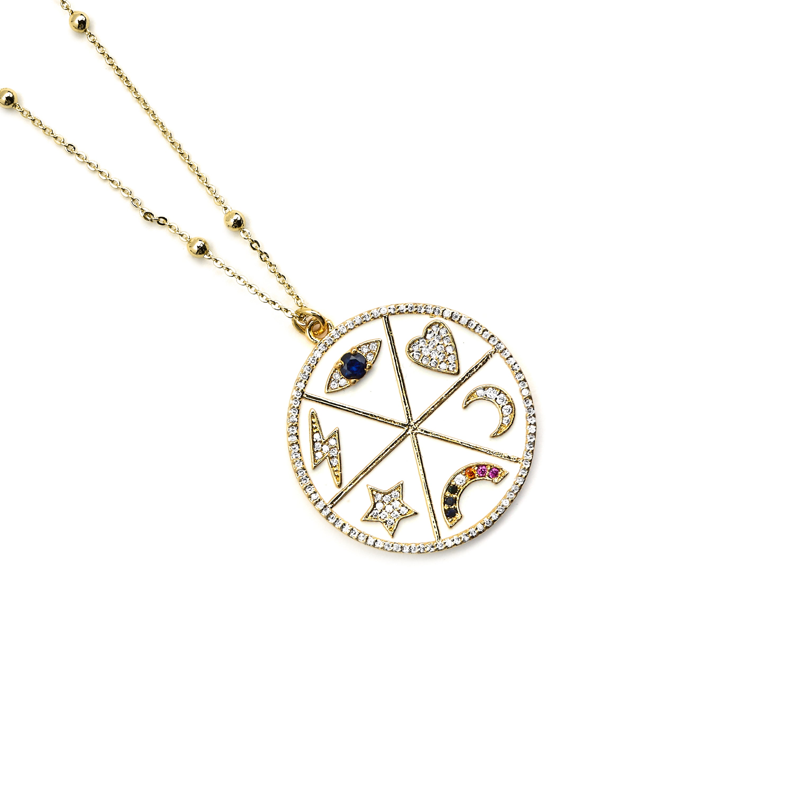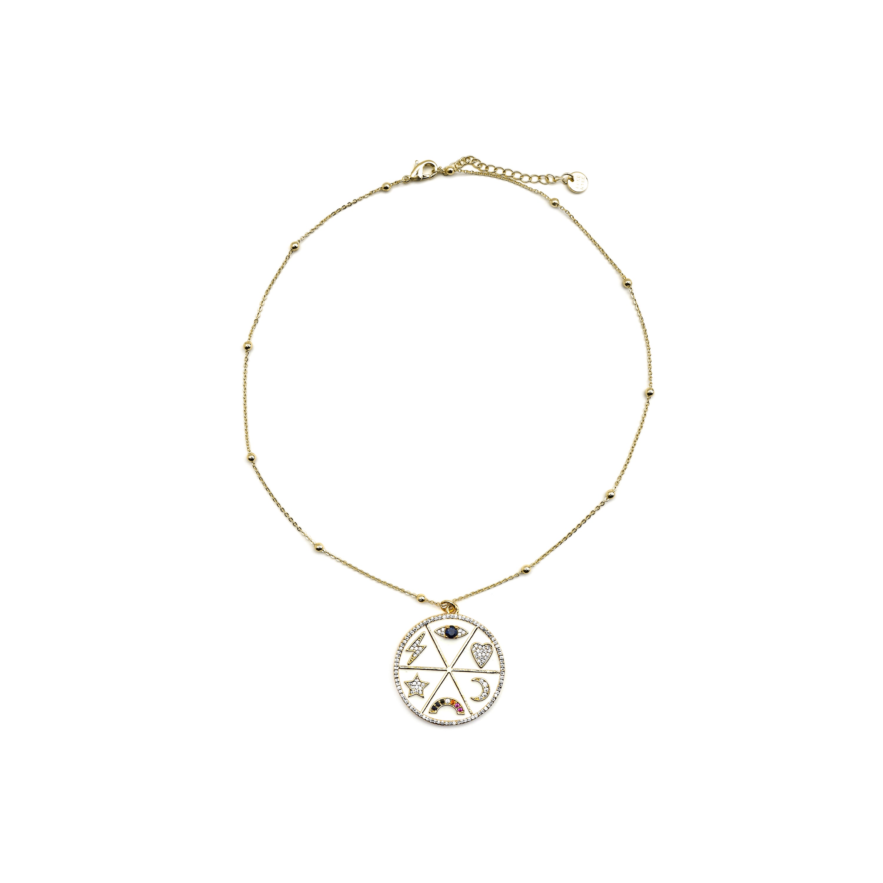 Collier en métal Thiem avec zircone multicolore finition or 18 carats. Le style Boho est une esthétique d'esprit libre qui mélange différentes cultures et expressions artistiques dans un style éclectique mettant l'accent sur les éléments organiques et la nature.