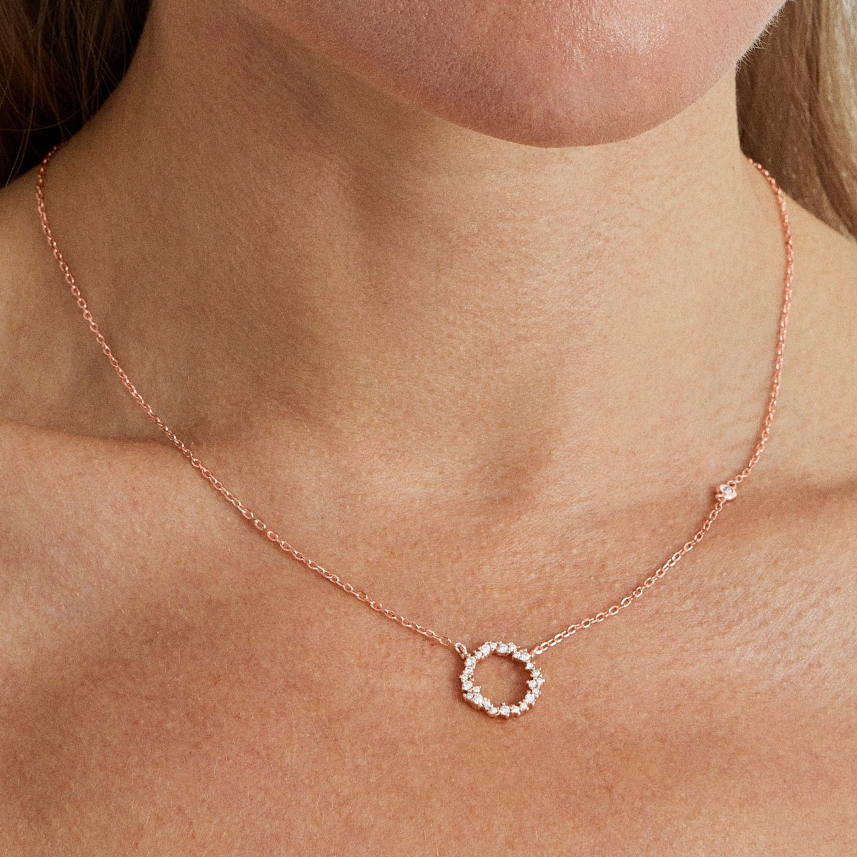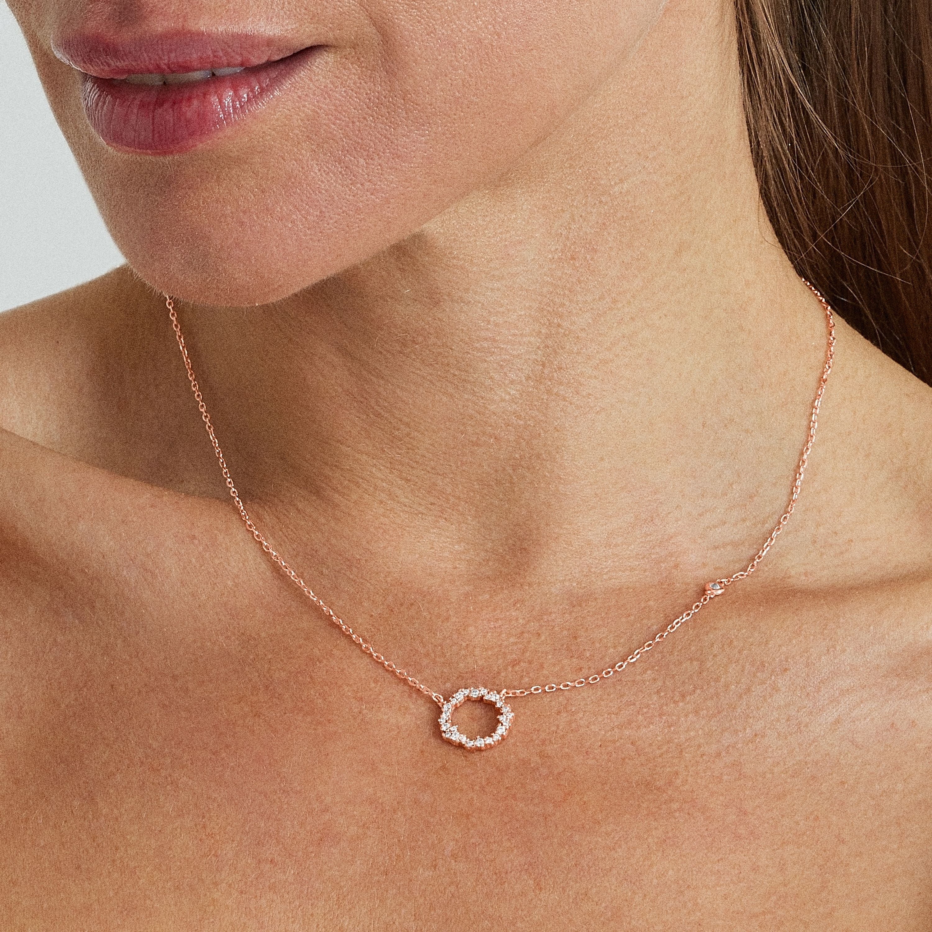 Collier en argent sterling 925 et zircon brillant avec finition en plaqué or rose 18 carats. Fais un vœu se caractérise par des designs au caractère jeune, remplis de signification et de couleur, originaux tout en étant discrets, qui visent à devenir de petits talismans.