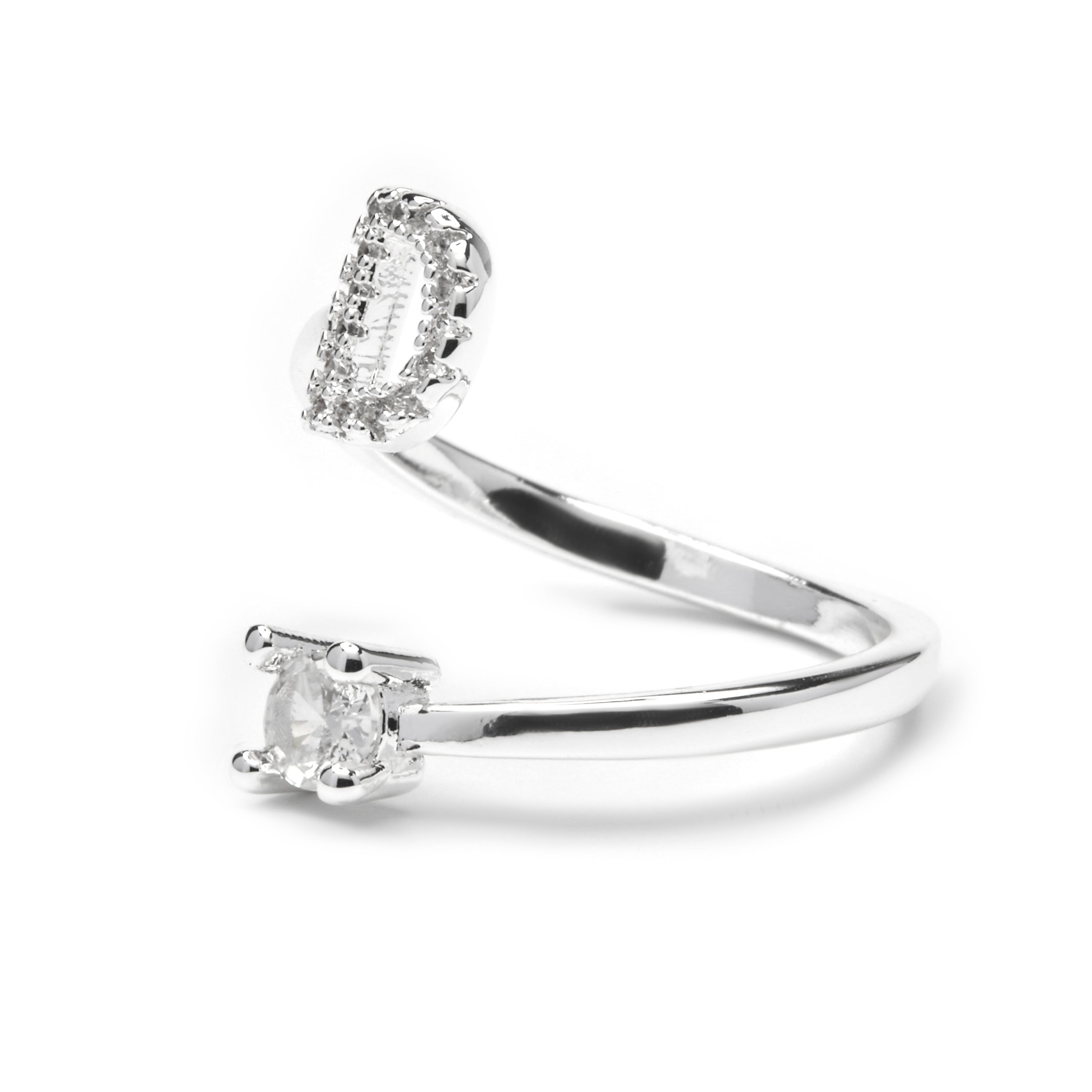 Anillo Alphabet con circonita brillante acabado plata