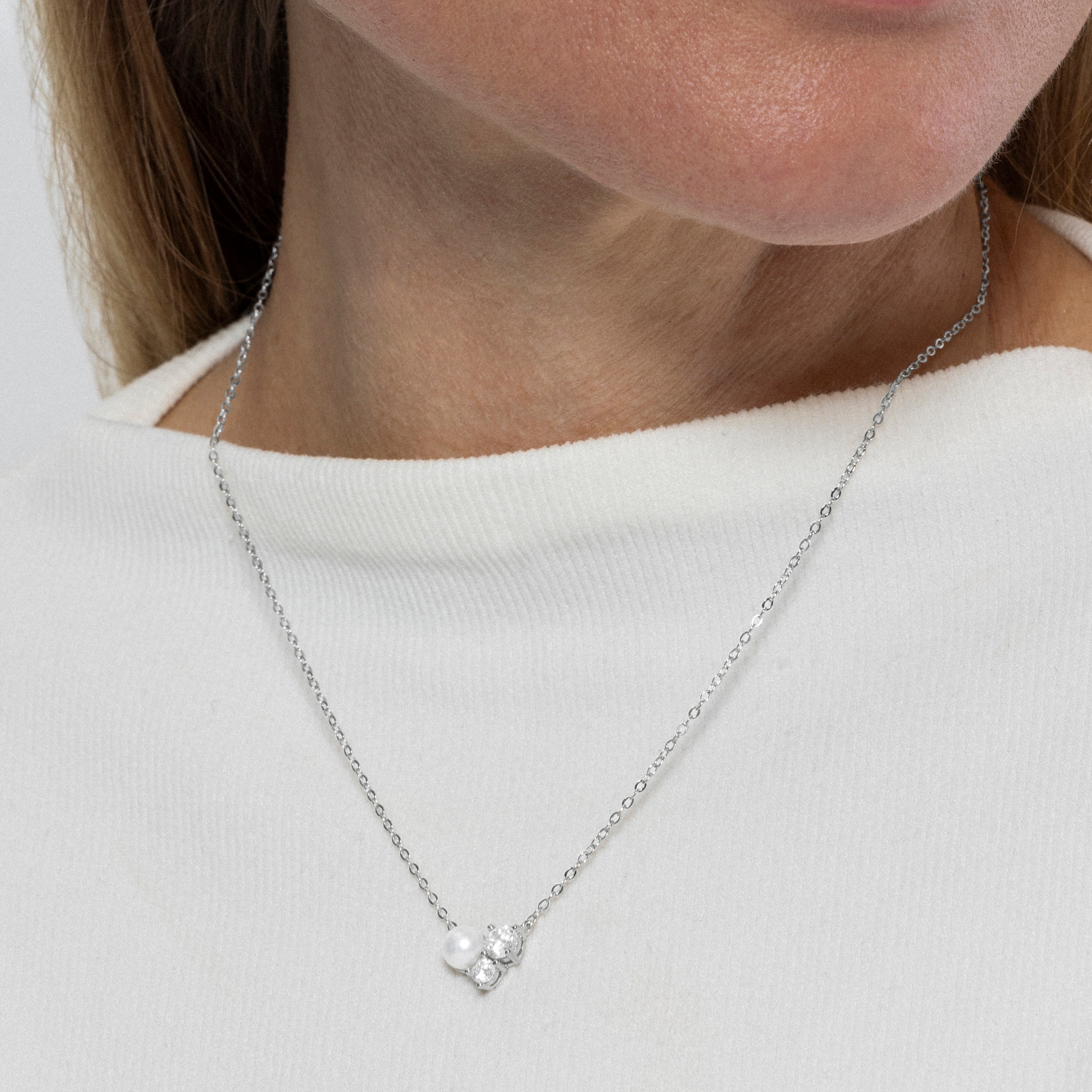 Collar de Plata de Ley 925 y Perla Blanca acabado en rodio - Askil