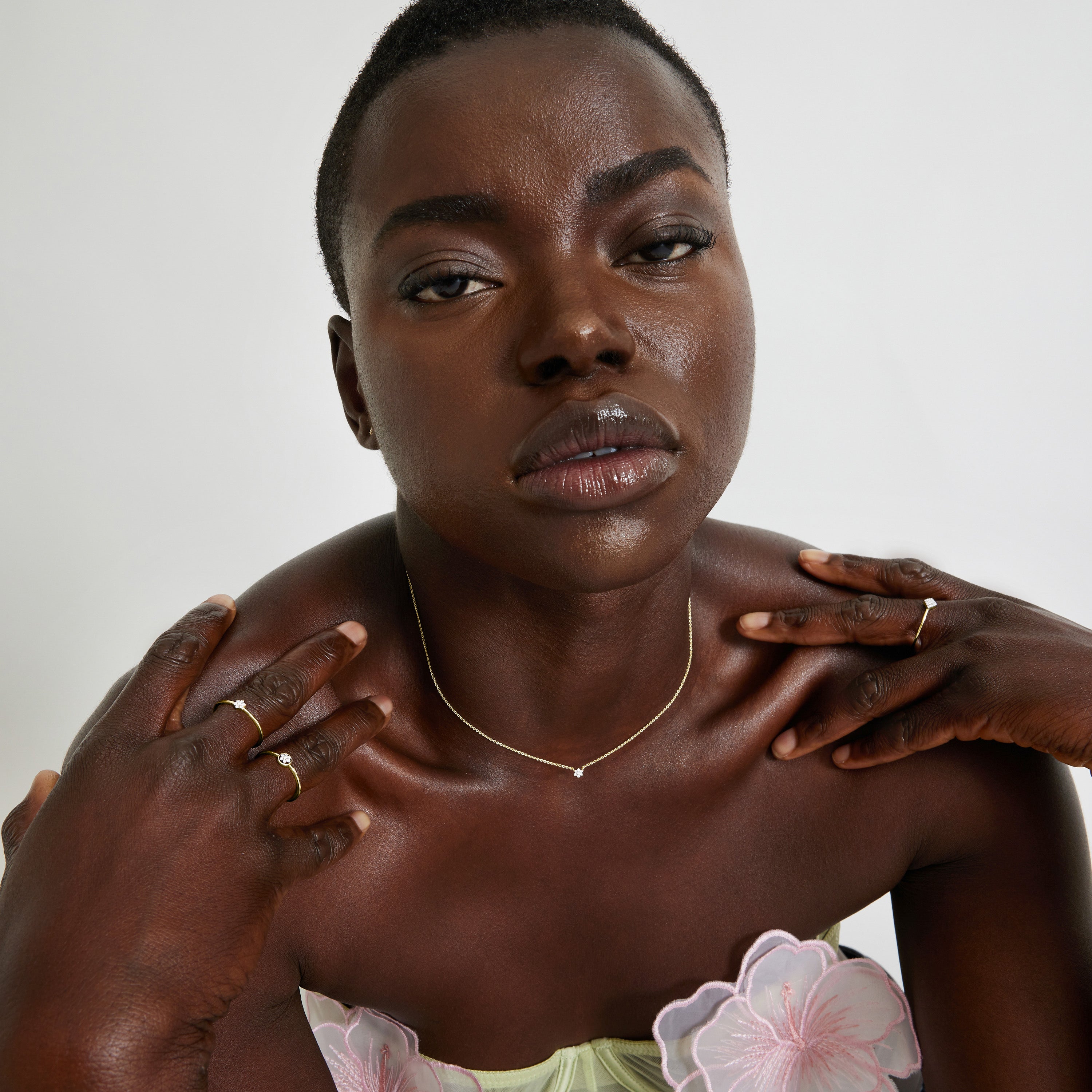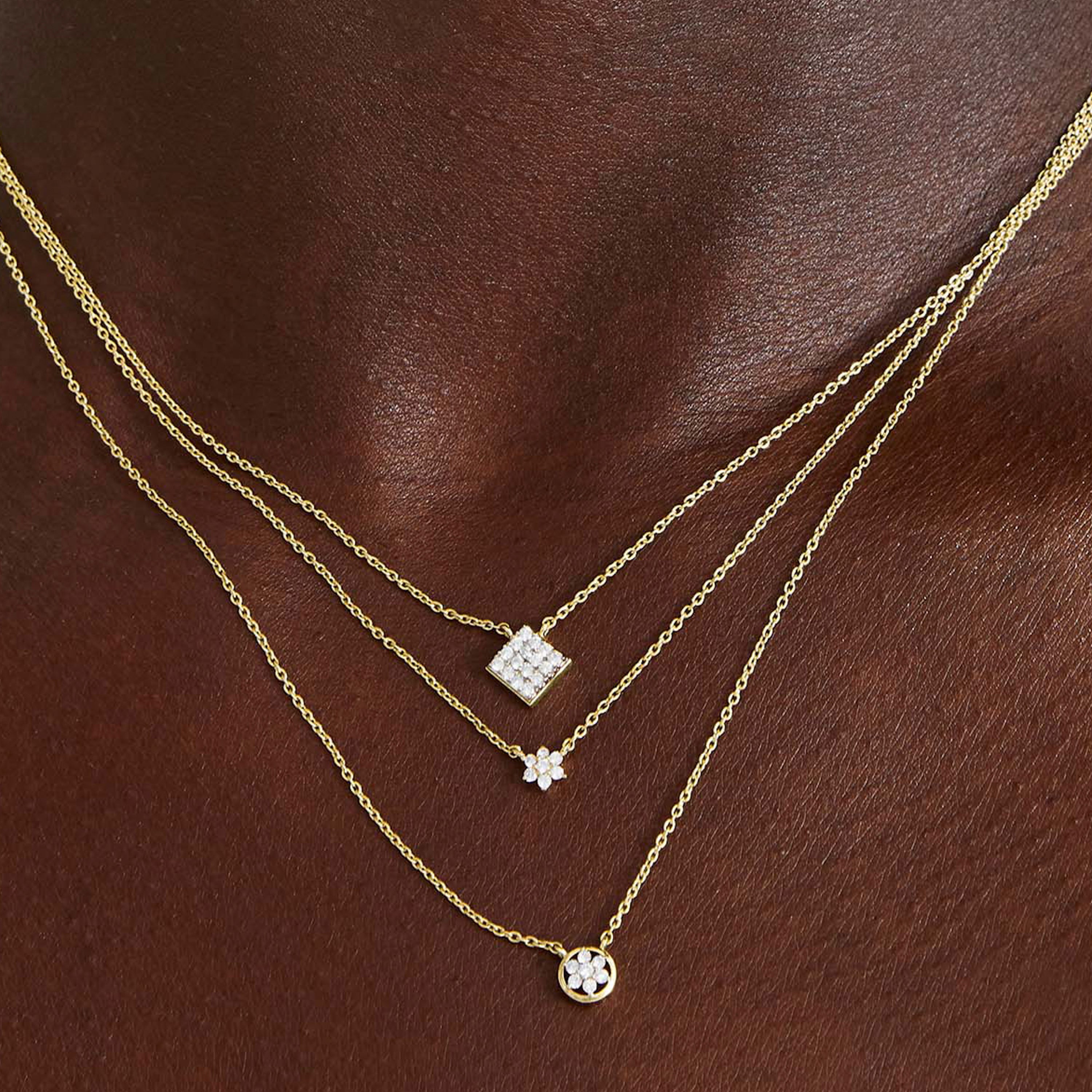 Collar Lalak oro de ley de 18 quilates libres de mineria. METAL: Oro macizo de 18K. PIEDRAS: Diamantes (Calidad D). QUILATES: 0,04. Nº DE PIEDRAS: 7. DIÁMETRO: 1,10 mm. PUREZA: VVS CADENA: Cierre ajustable de 40 a 45 Cm. PESO: 0,8 gr.