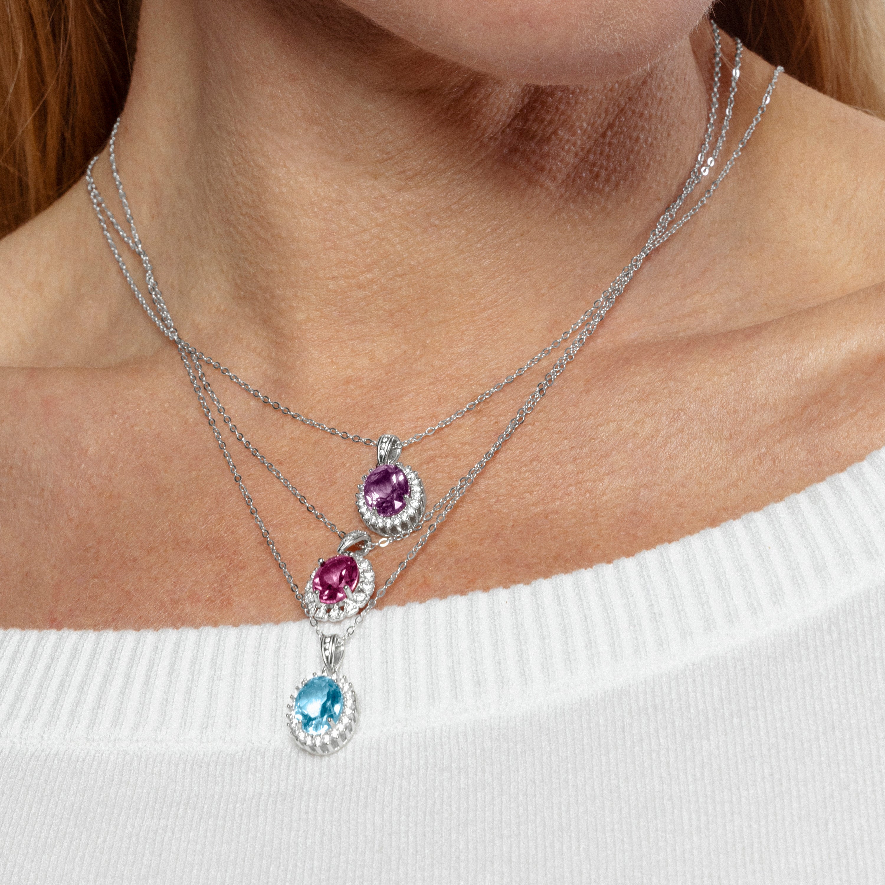 Collar Lirian de Plata de Ley 925 con Amatista Natural acabado en rodio. Atelier transmite tendencia en cada joya, con diseños que se han ido adaptando a la evolución de la moda y de la mujer. Es la línea perfecta para mujeres únicas que quieren aportar un toque de color a su día a día.