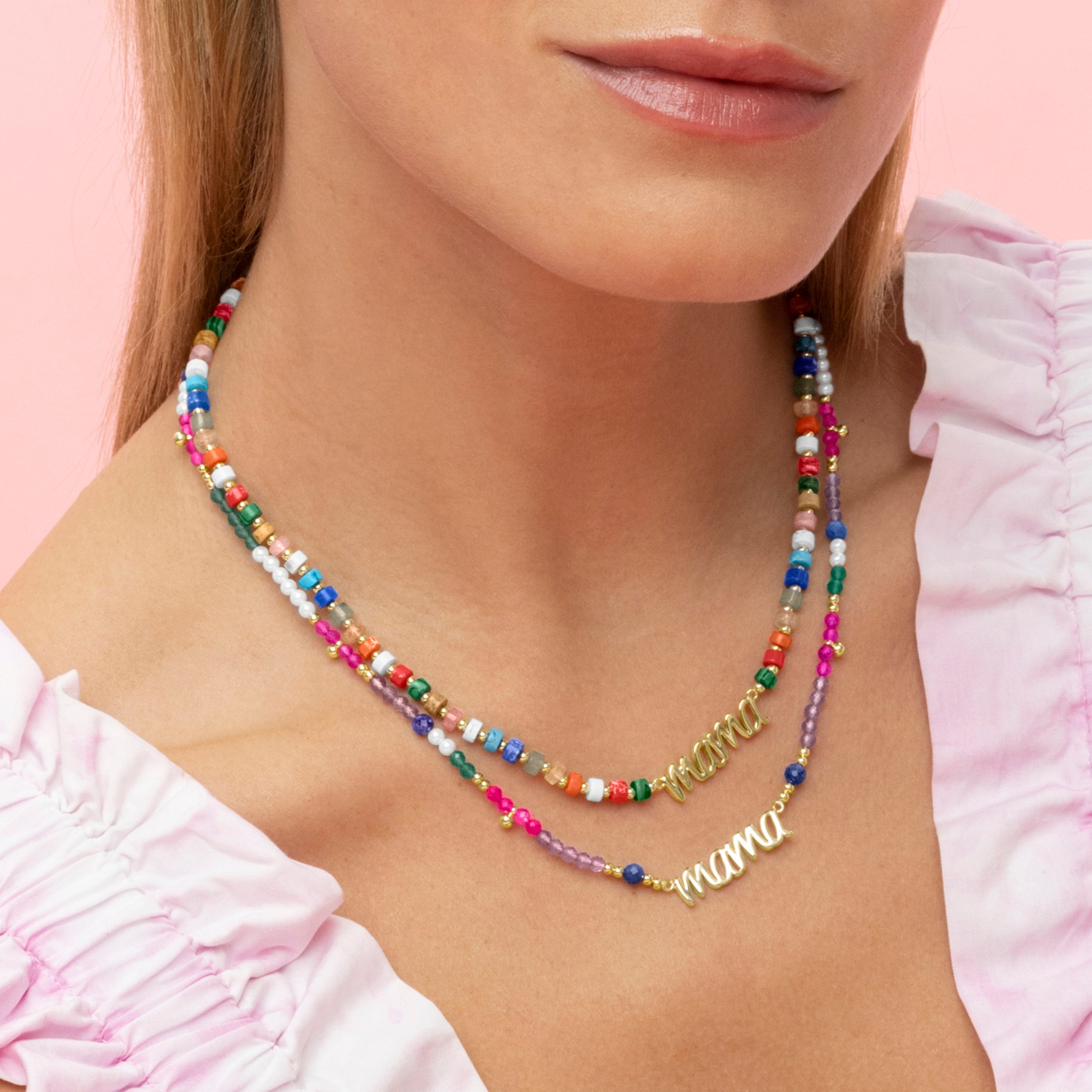 Collar de Plata de Ley 925 y Cristal Multicolor acabado en oro amarillo de 18k - Mama