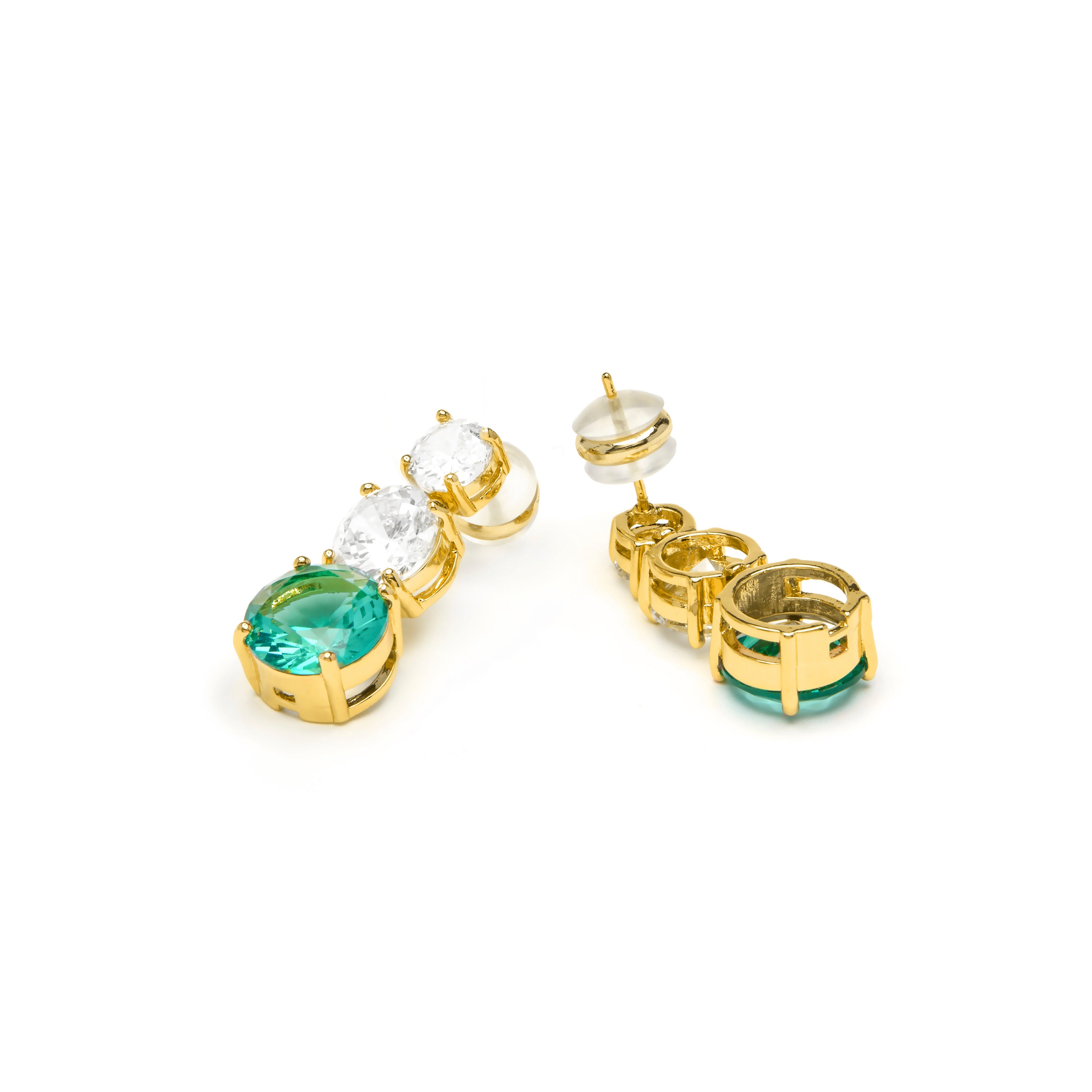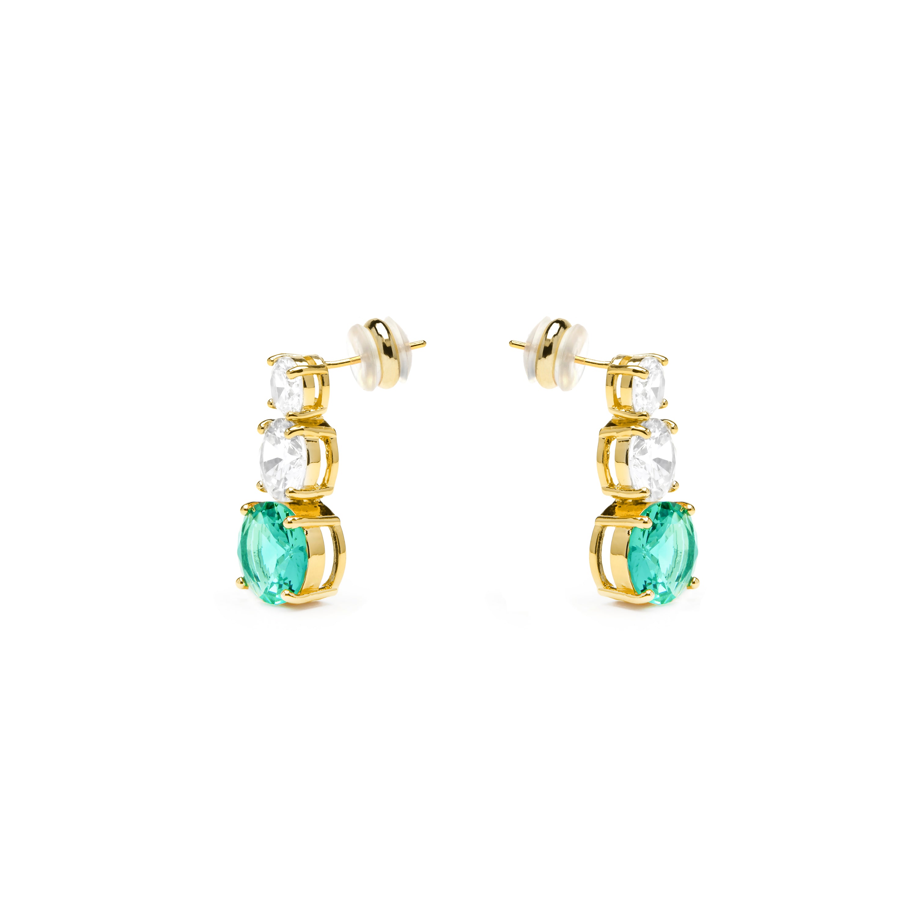 Pendientes Amkru con Cuarzo Hidrotermal Verde Paraiba acabado oro amarillo 18k