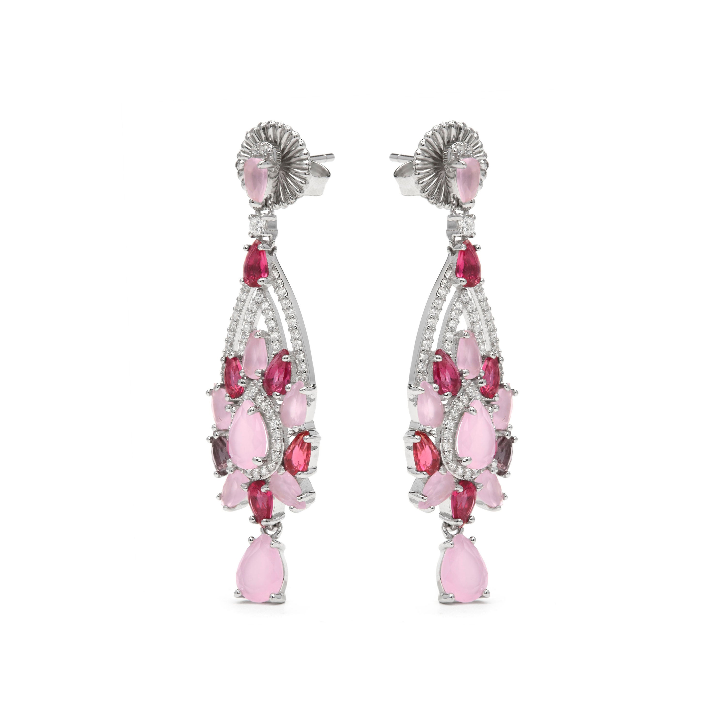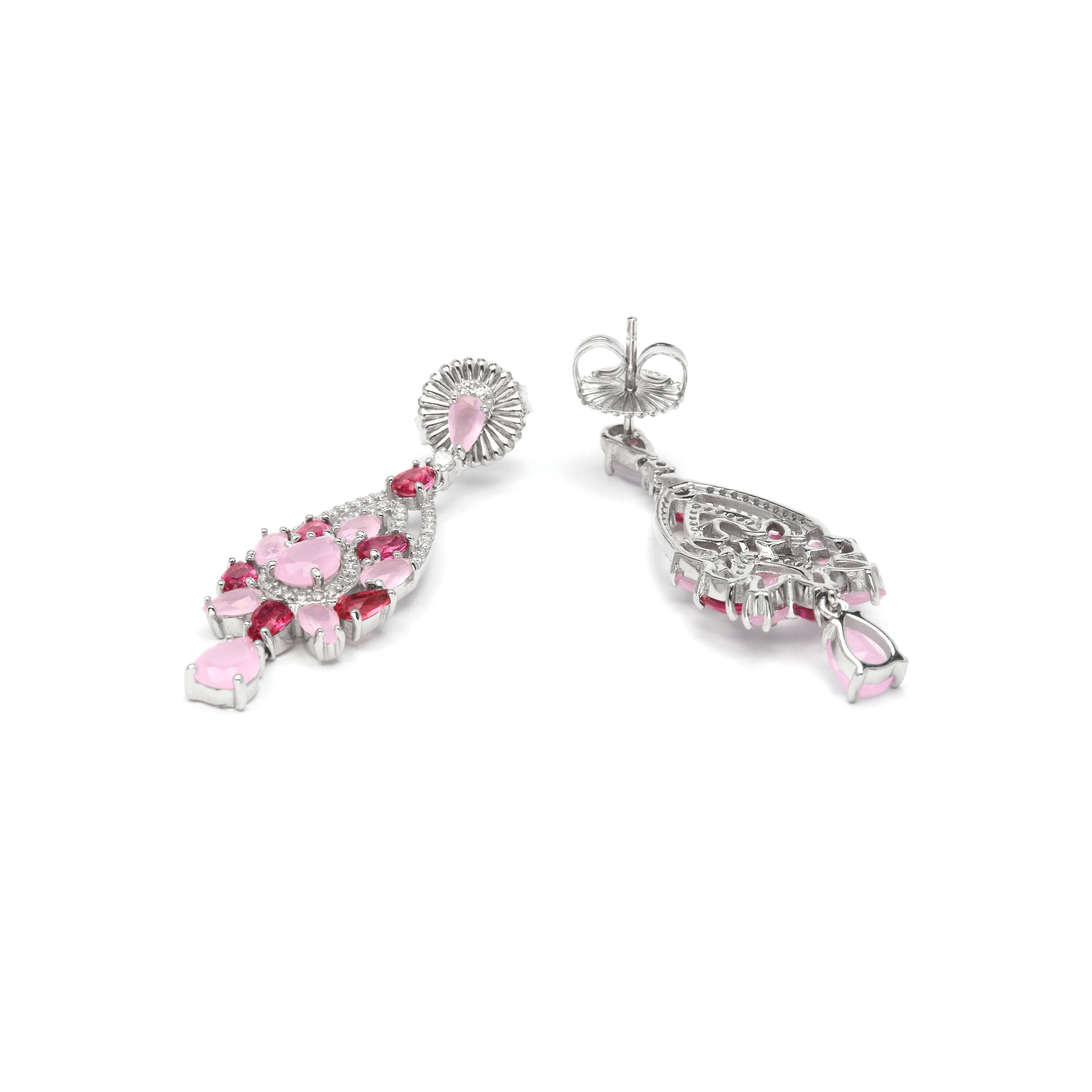 Pendientes Auga de Plata de Ley 925 y Cuarzo Hidrotermal Cereza acabado en rodio