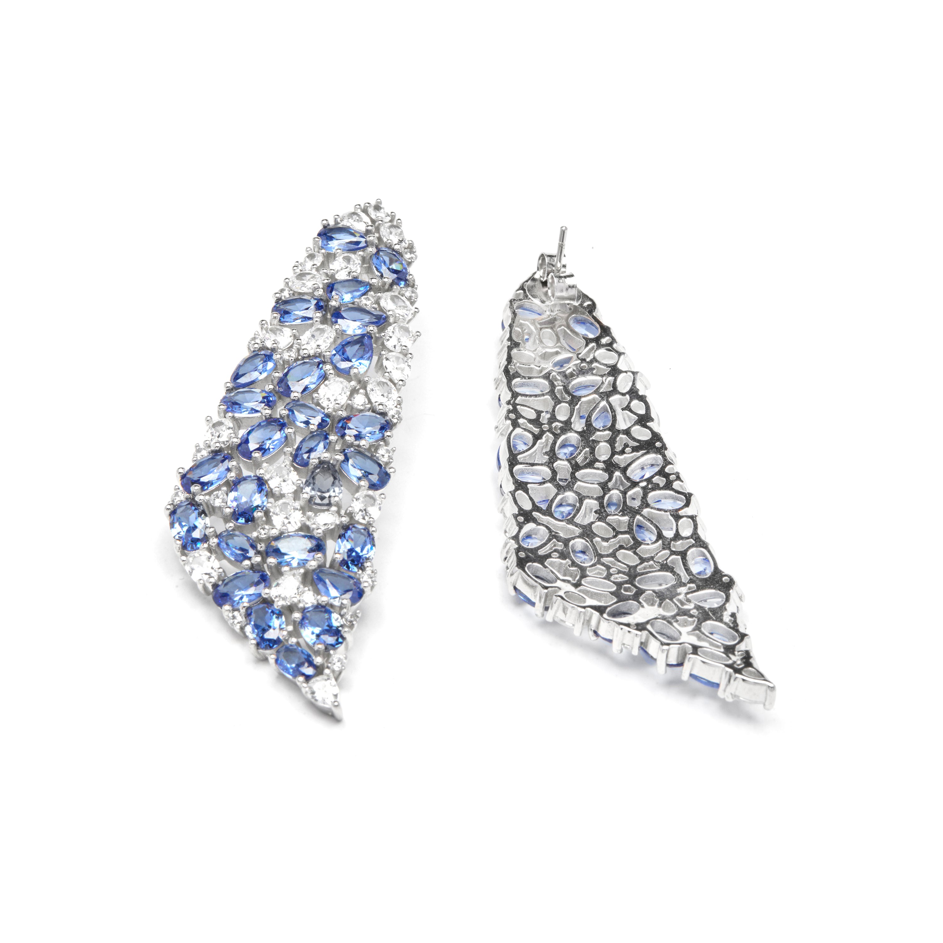 Pendientes Bykha de Plata de Ley 925 y Circonita Zafiro acabado en rodio