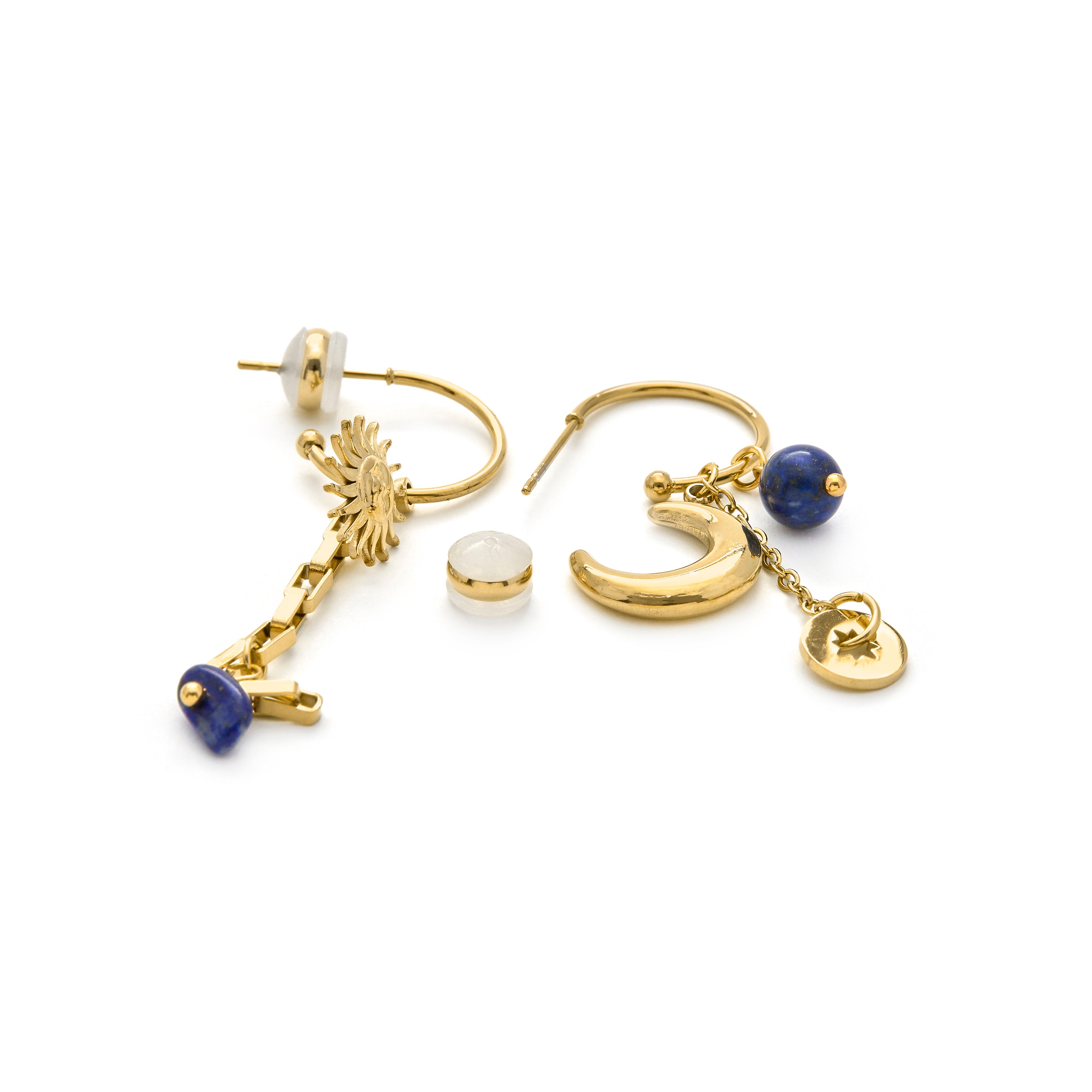 Pendientes Gud de Cristal Azul acabado en Oro Amarillo 18k