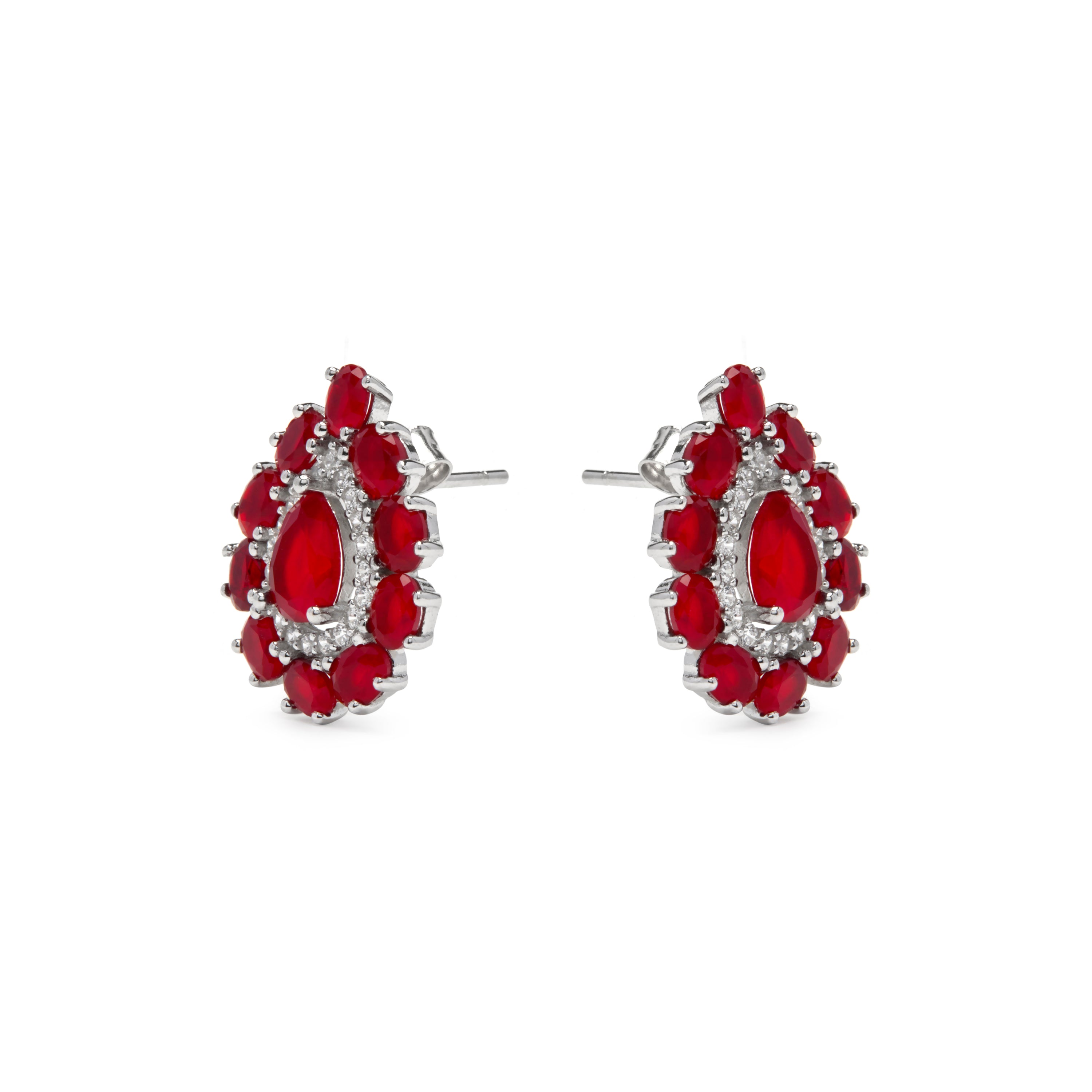 Pendientes de Plata de Ley 925 y Cuarzo Hidrotermal Cereza acabado en rodio - Habelo