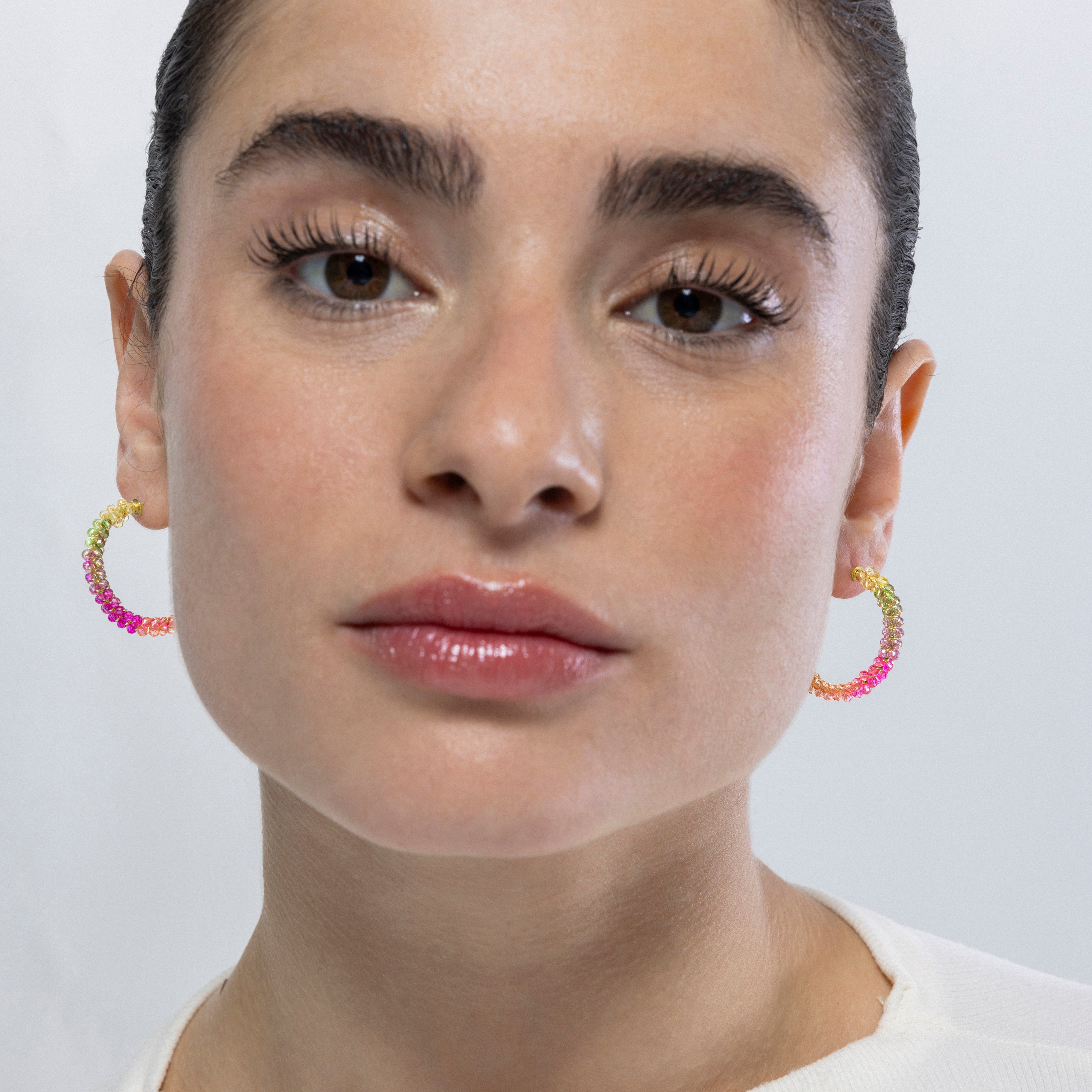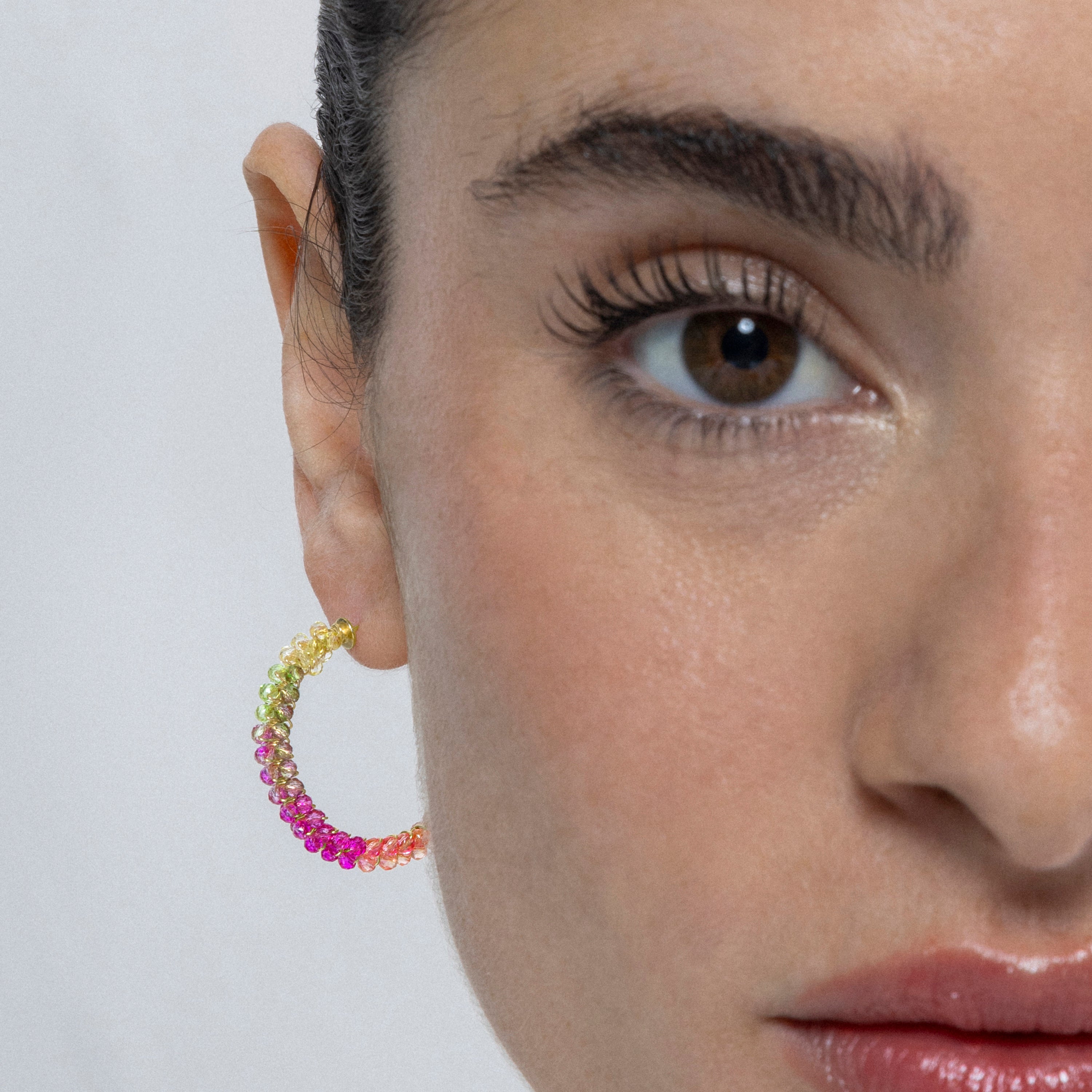Pendientes Kibak de Plata de Ley 925 y Cristal Multicolor acabados en oro amarillo de 18k. Atelier transmite tendencia en cada joya, con diseños que se han ido adaptando a la evolución de la moda y de la mujer. Es la línea perfecta para mujeres únicas que quieren aportar un toque de color a su día a día.