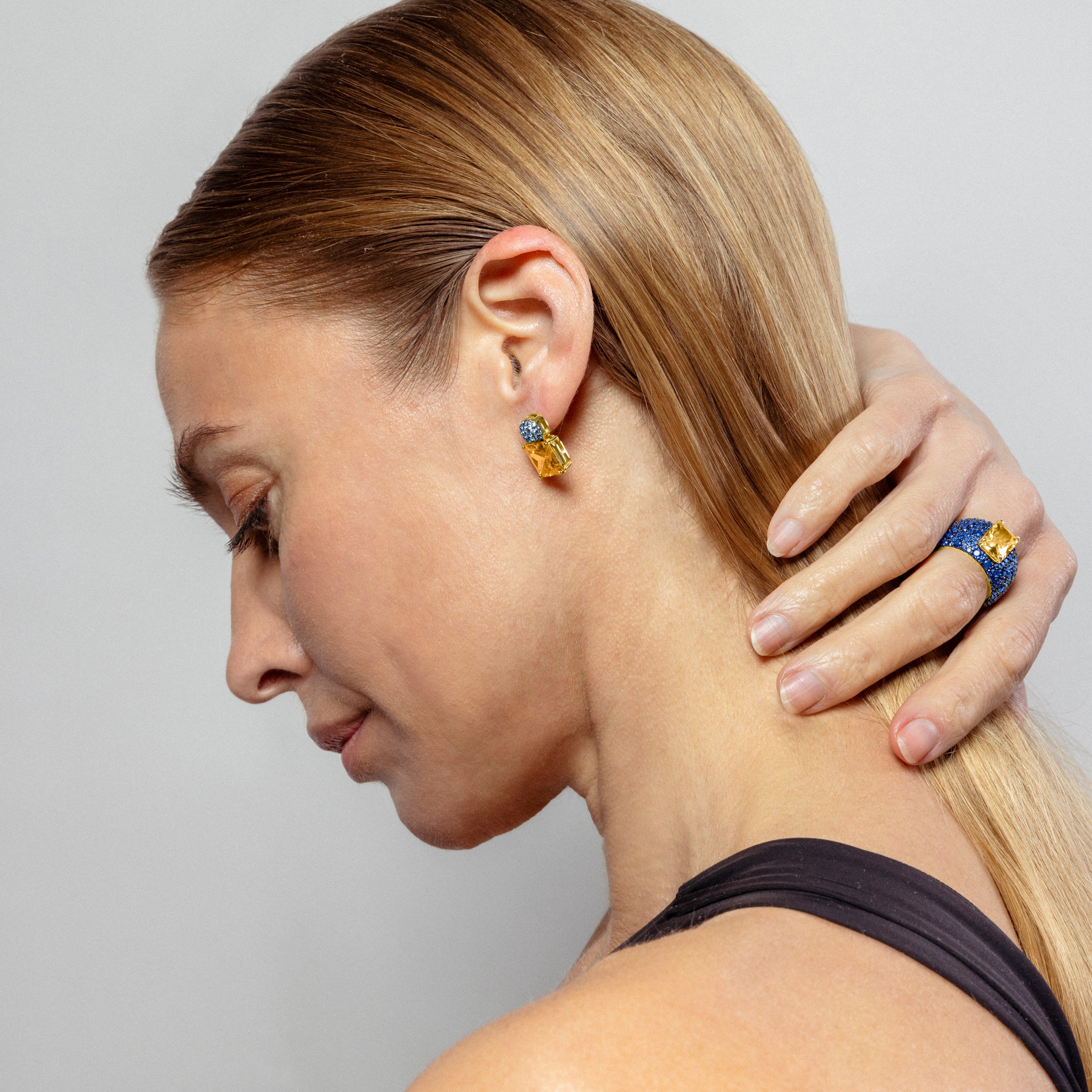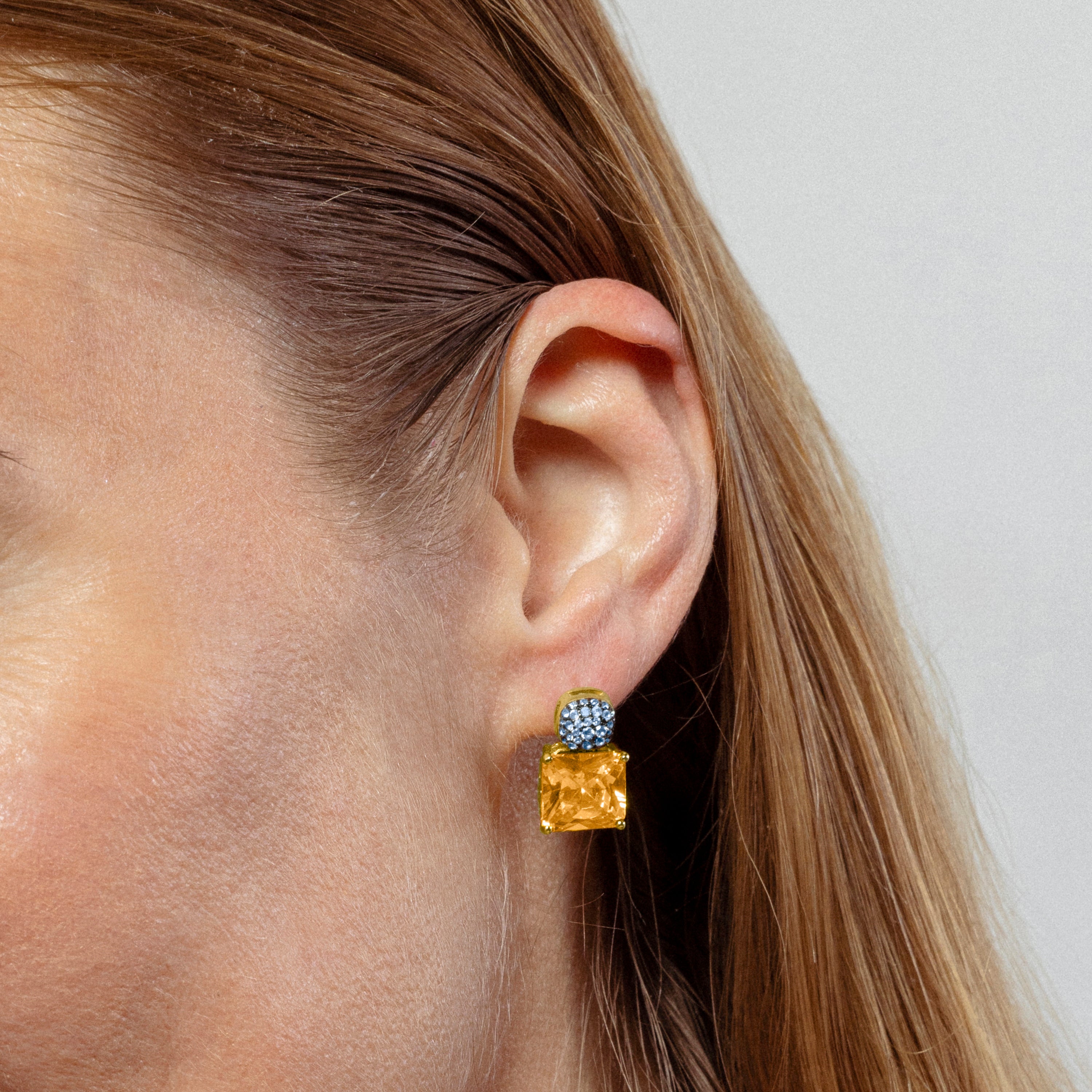 Pendientes Naydus de Plata de Ley 925 y Padparadscha acabados en oro amarillo de 18k. Atelier transmite tendencia en cada joya, con diseños que se han ido adaptando a la evolución de la moda y de la mujer. Es la línea perfecta para mujeres únicas que quieren aportar un toque de color a su día a día.