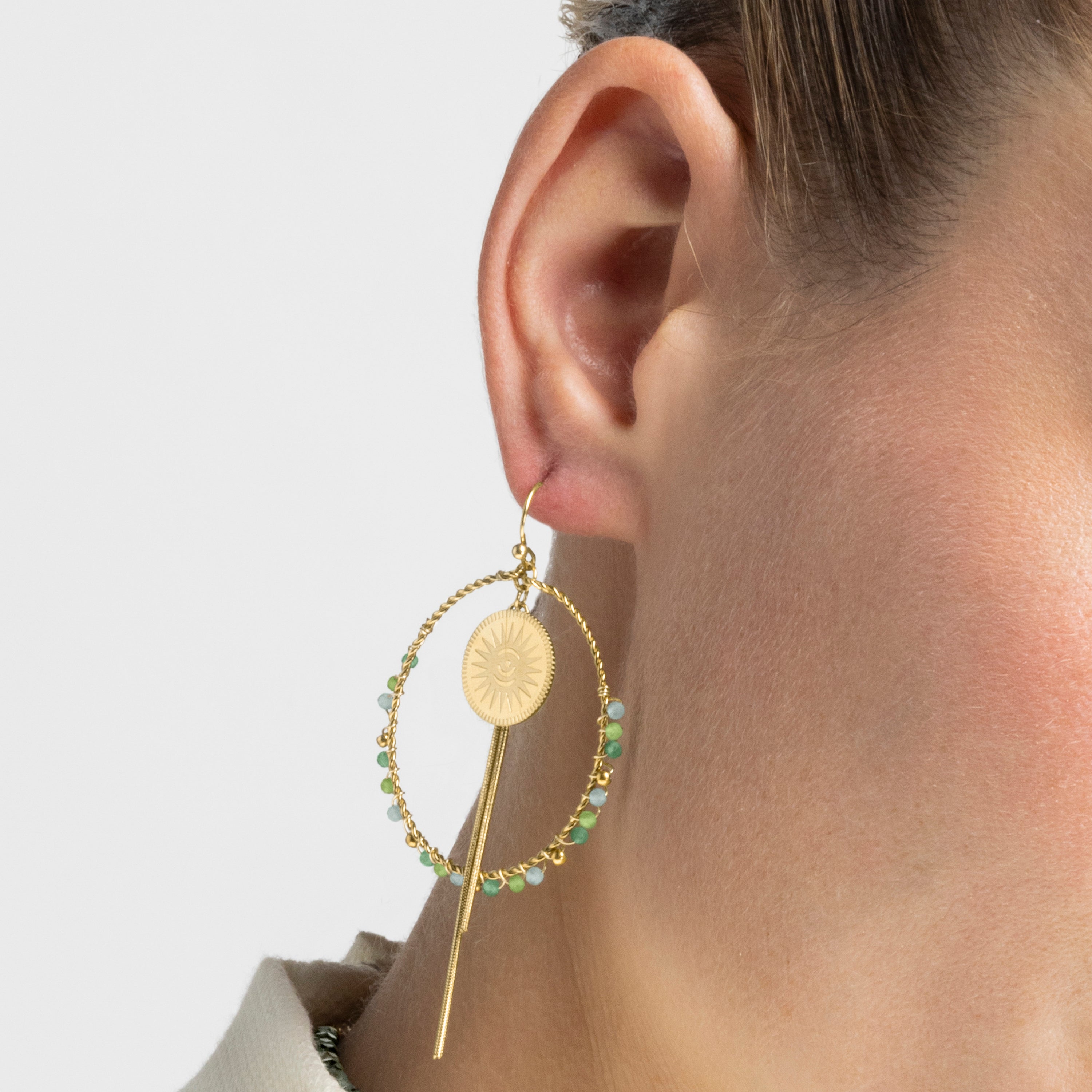 Pendientes de acero Pova con Cristal Multicolor acabado oro 18k. El estilo Boho es una estética de espíritu libre que mezcla diferentes culturas y expresiones artísticas en un estilo ecléctico con énfasis en los elementos orgánicos y la naturaleza.