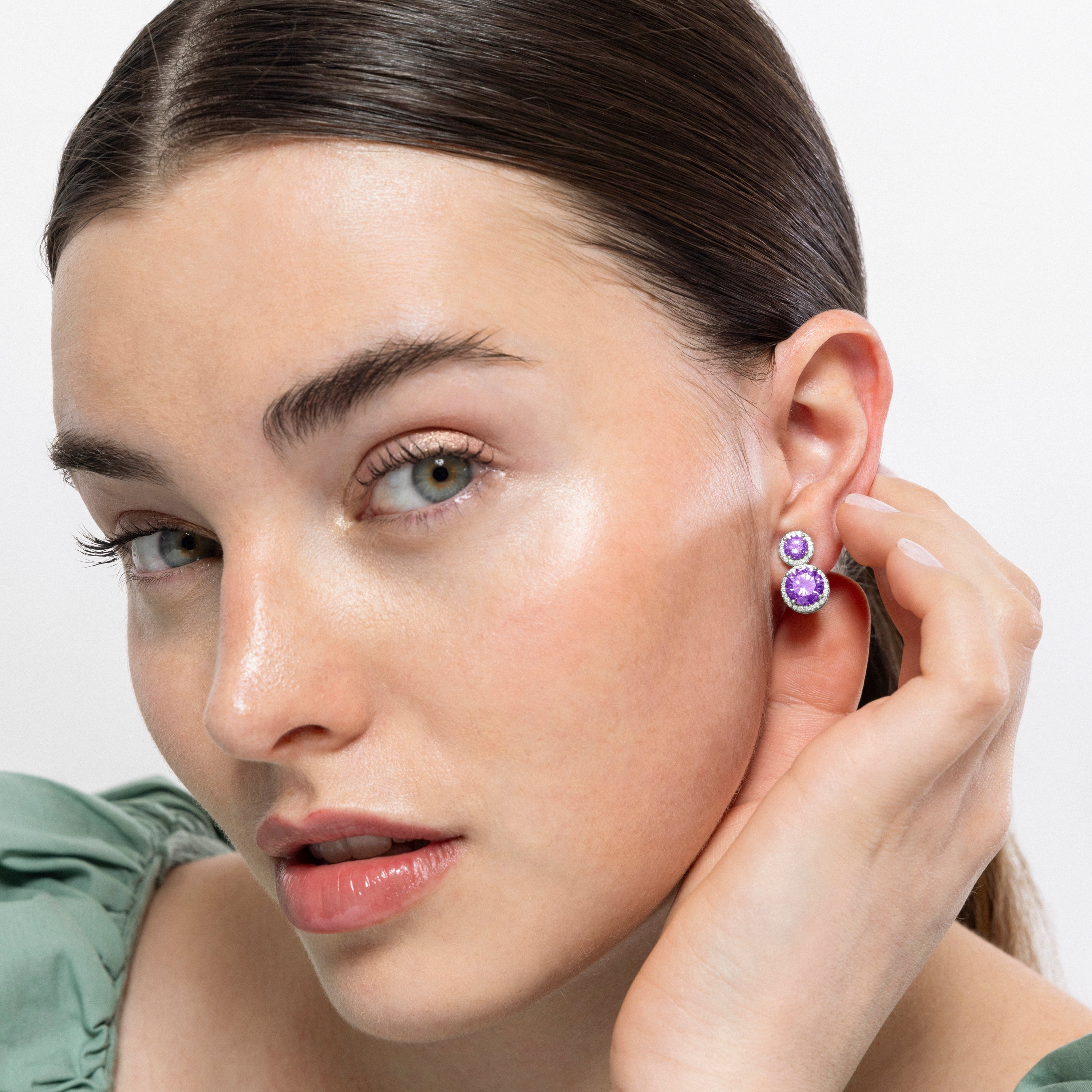 Pendientes Pruka De plata De Ley 925 con Circonita Amatista acabado rodio. Atelier transmite tendencia en cada joya, con diseños que se han ido adaptando a la evolución de la moda y de la mujer. Es la línea perfecta para mujeres únicas que quieren aportar un toque de color a su día a día.