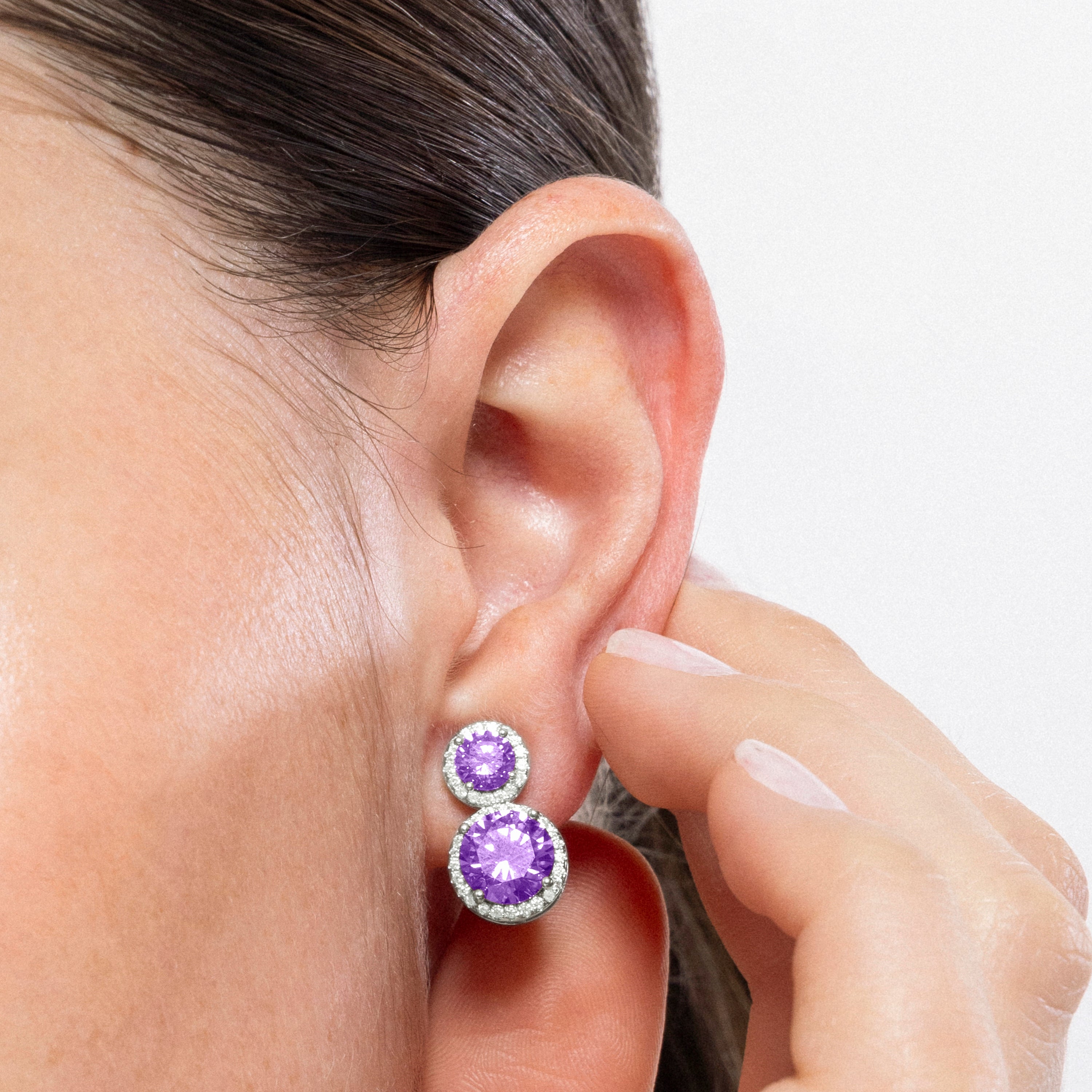 Pendientes De Plata De Ley 925 con Circonita Amatista acabado rodio - Pruka