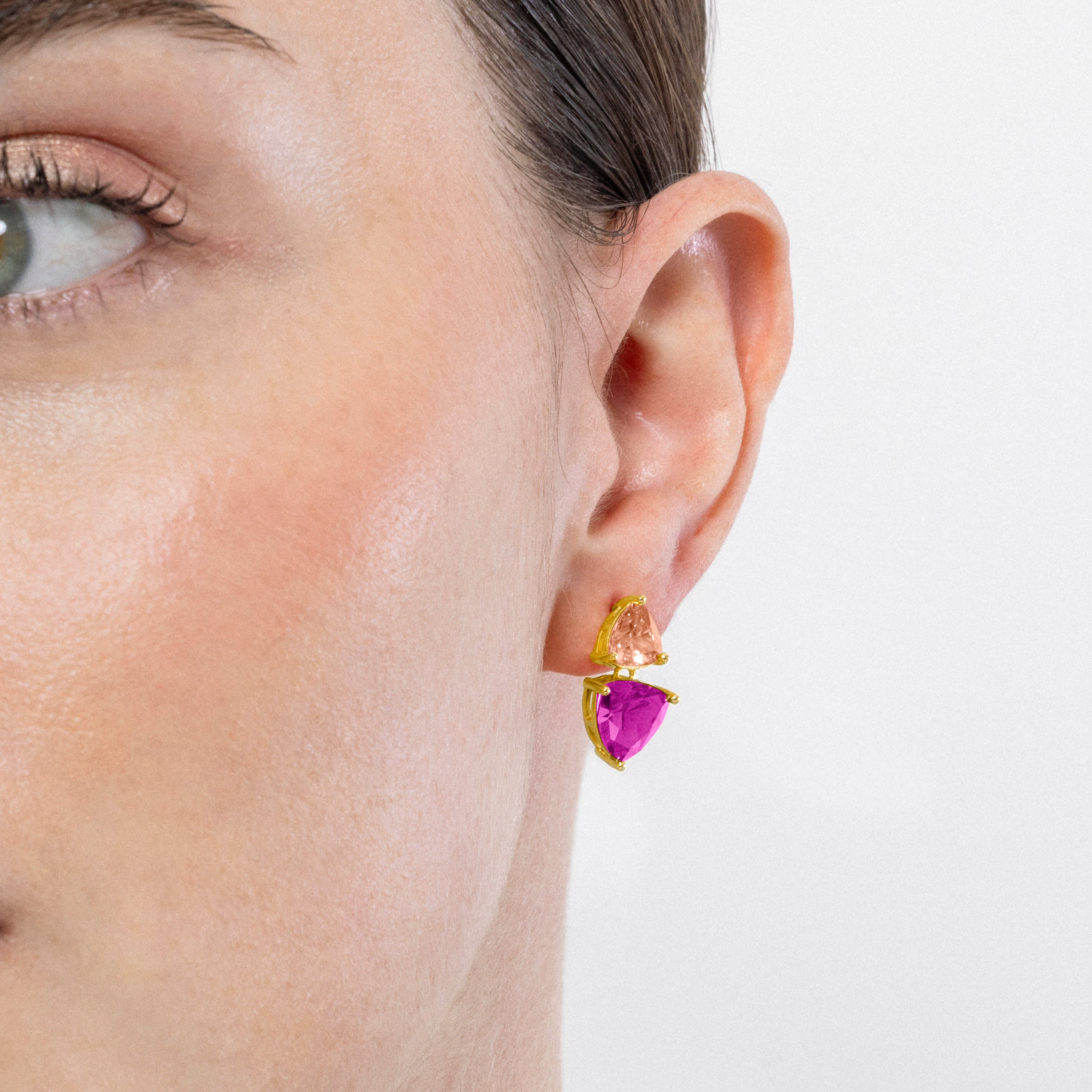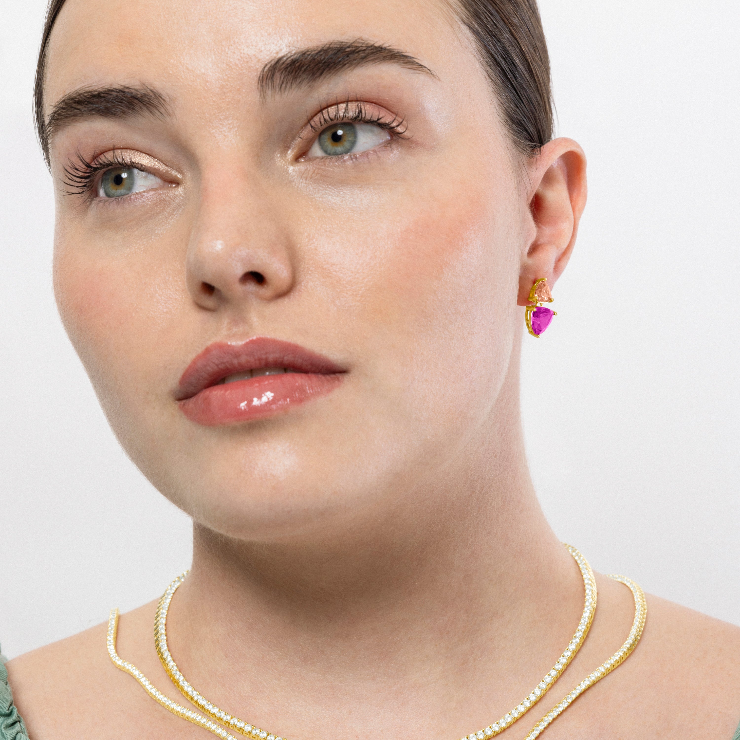 Pendientes Simtul de Plata de Ley 925 y Circonita Rosa acabados en oro amarillo de 18k. Atelier transmite tendencia en cada joya, con diseños que se han ido adaptando a la evolución de la moda y de la mujer. Es la línea perfecta para mujeres únicas que quieren aportar un toque de color a su día a día.