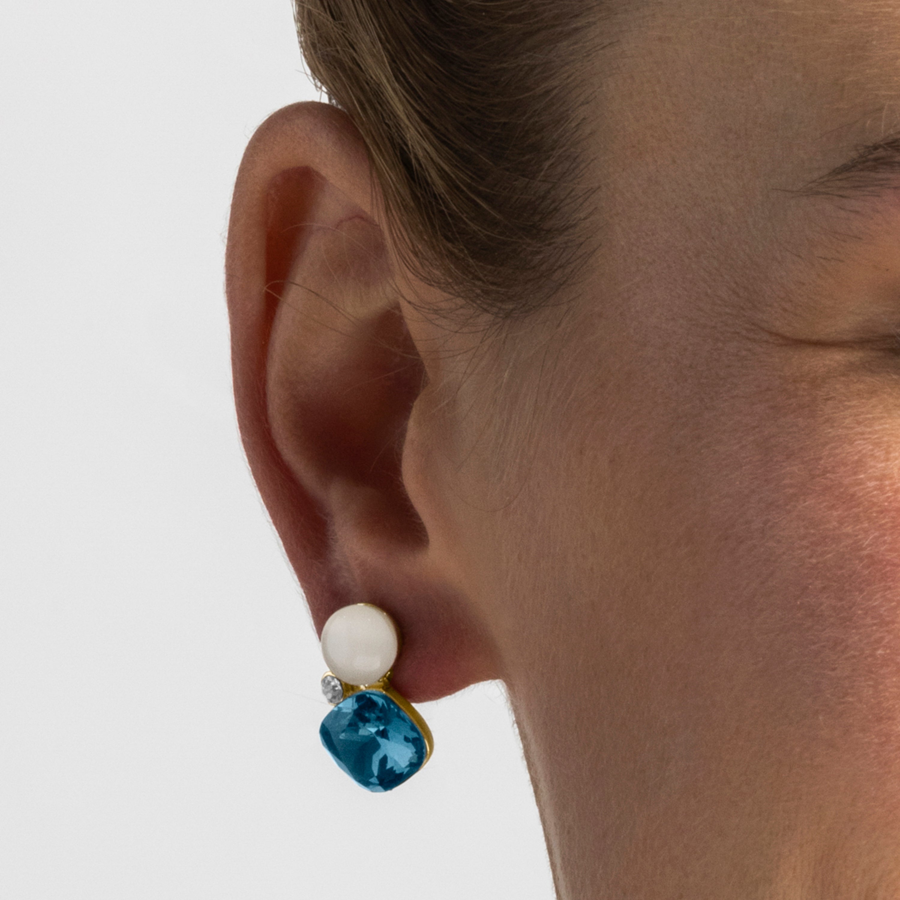 Pendientes Sitla con Ojo de Gato acabado oro 18k. África se convierte en la línea perfecta para mujeres con personalidad, que no temen arriesgar y lucir piezas con carácter propio.