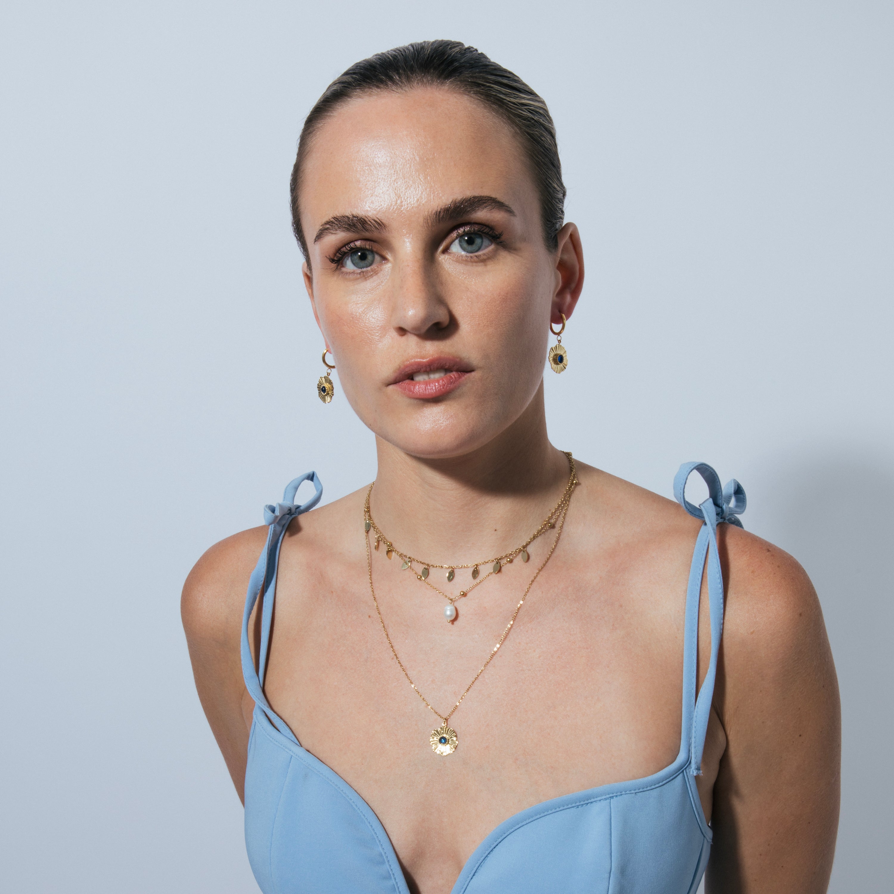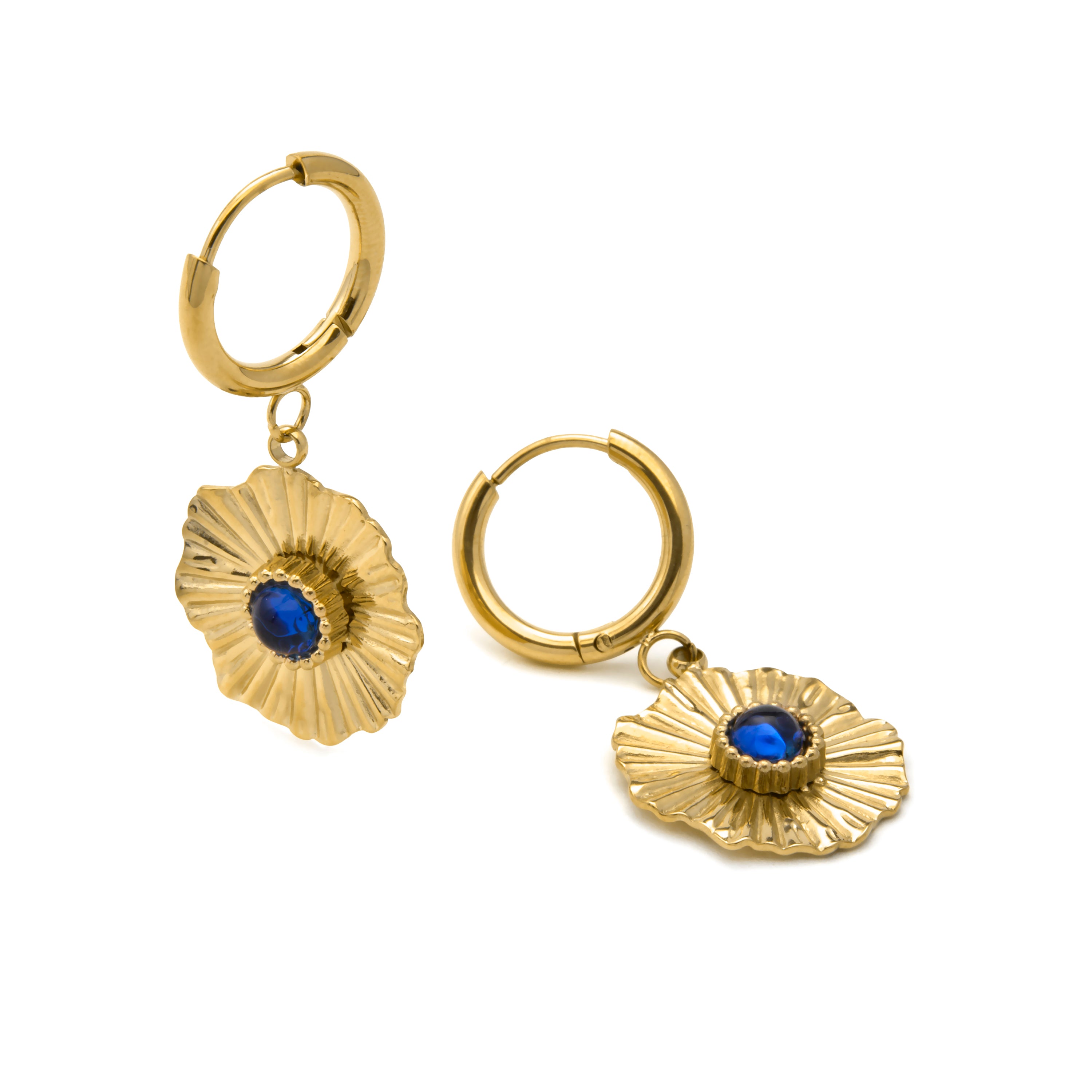 Pendientes de Cristal Azul acabado en oro amarillo 18k - Skyly