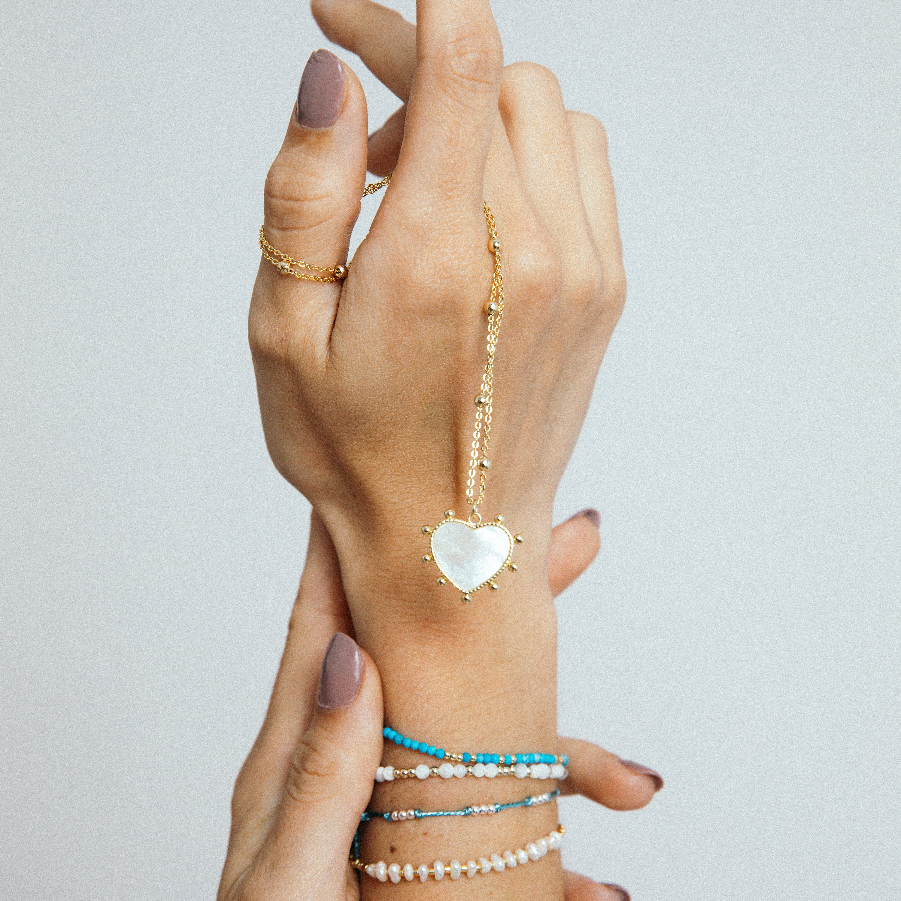 Pulsera Thraya de Perla Blanca acabado oro amarillo de 18k