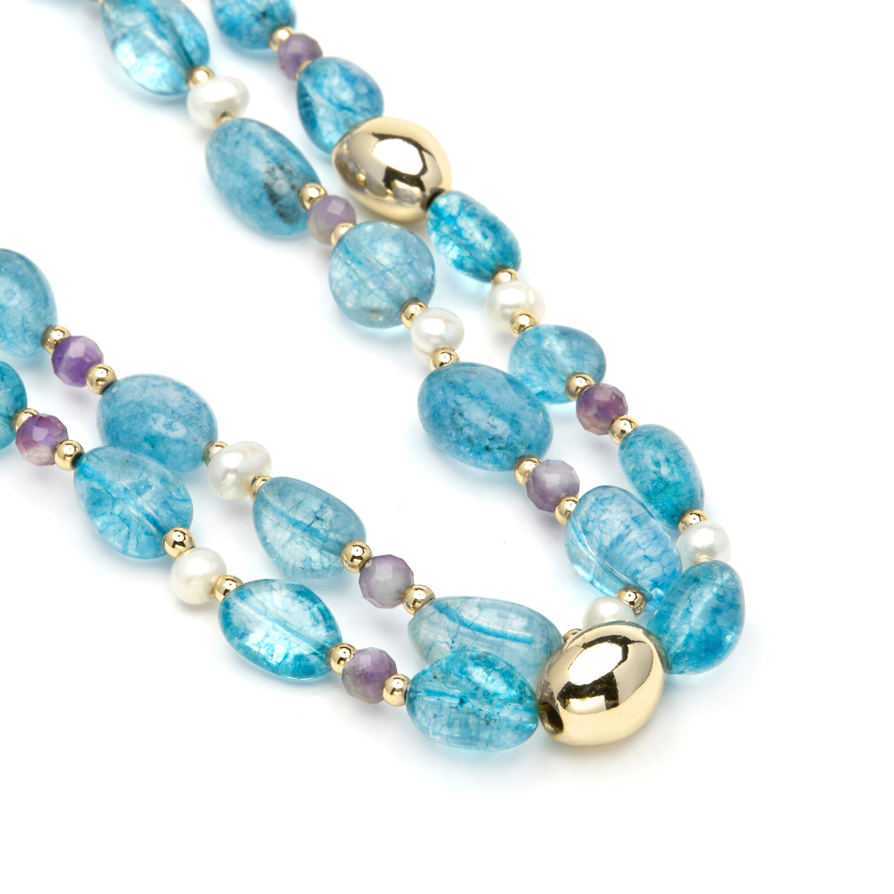 Collar de Plata de Ley 925 y Cristal Azul acabado en oro amarillo 18k - Aswudi