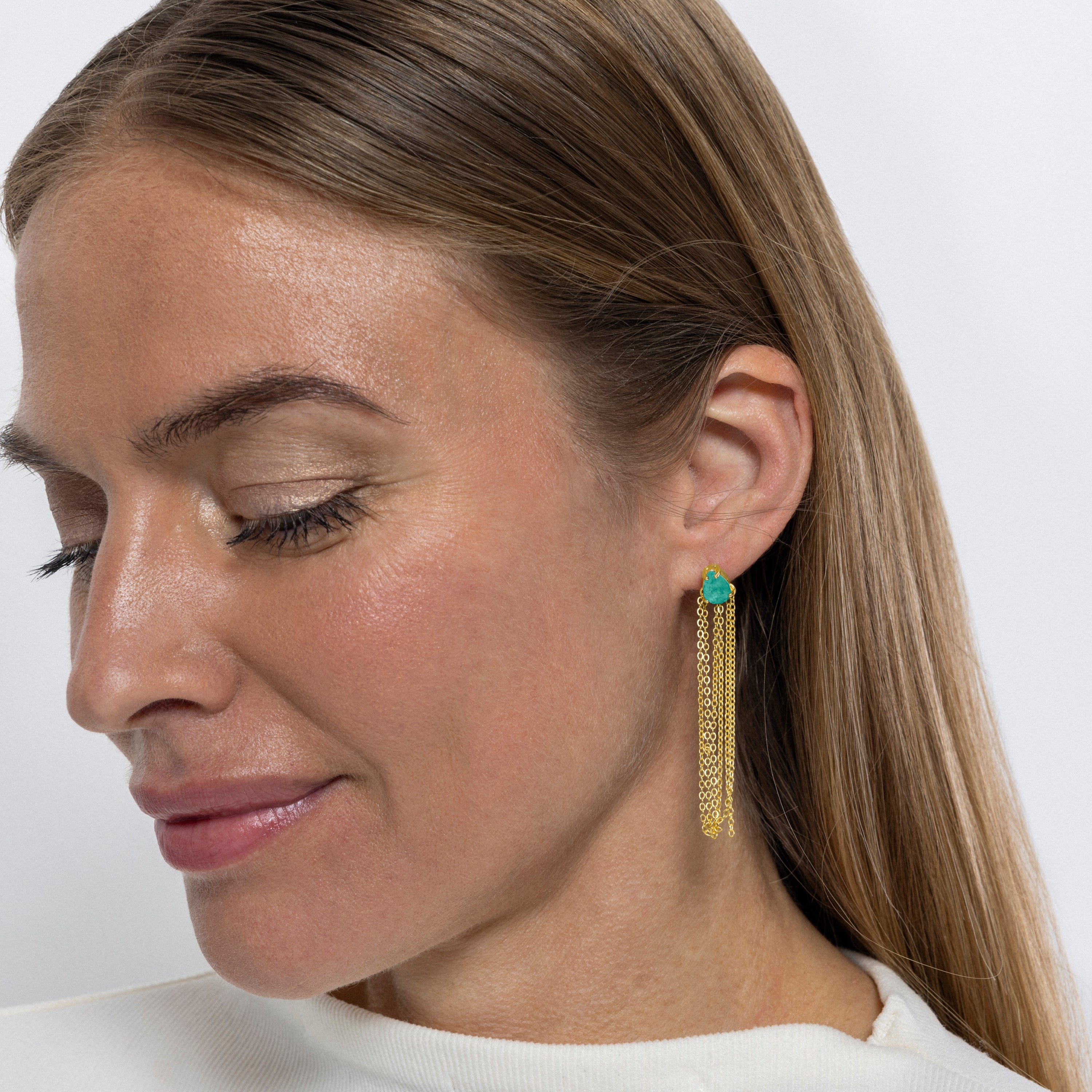 Pendientes Egah de Plata de Ley 925 y Cuarzo Hidrotermal Verde Claro acabados en oro amarillo de 18k. Trendy representa las tendencias clave en el mundo de la moda. Nuestra línea más espontanea, con un marcado espíritu moderno que concentra en joyas repletas de color entre las que destaca el uso de piedras naturales y diseños en forma de amuletos y talismanes.