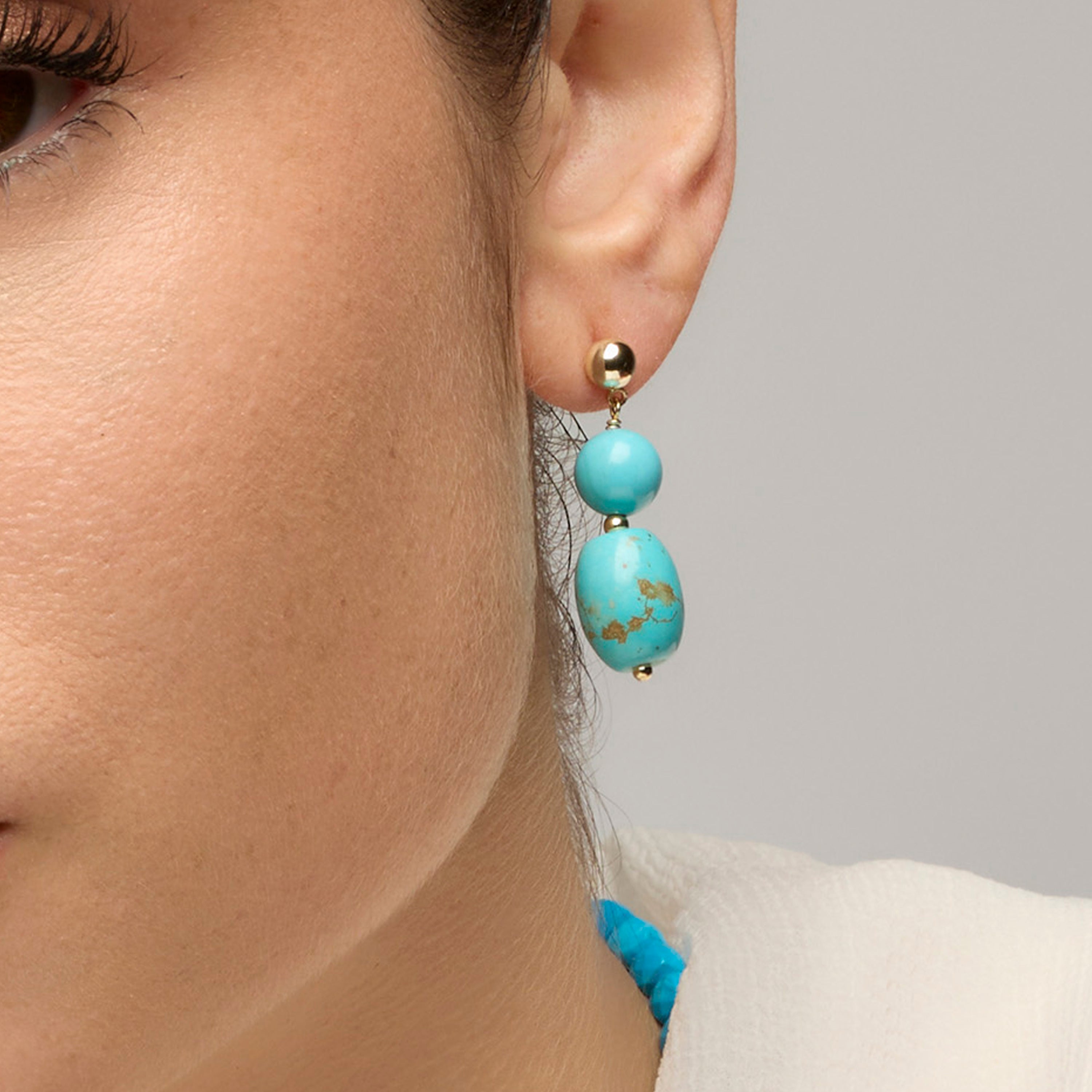 Pendientes de Plata de Ley 925 y Turquesa acabado oro amarillo de 18k - Shyra