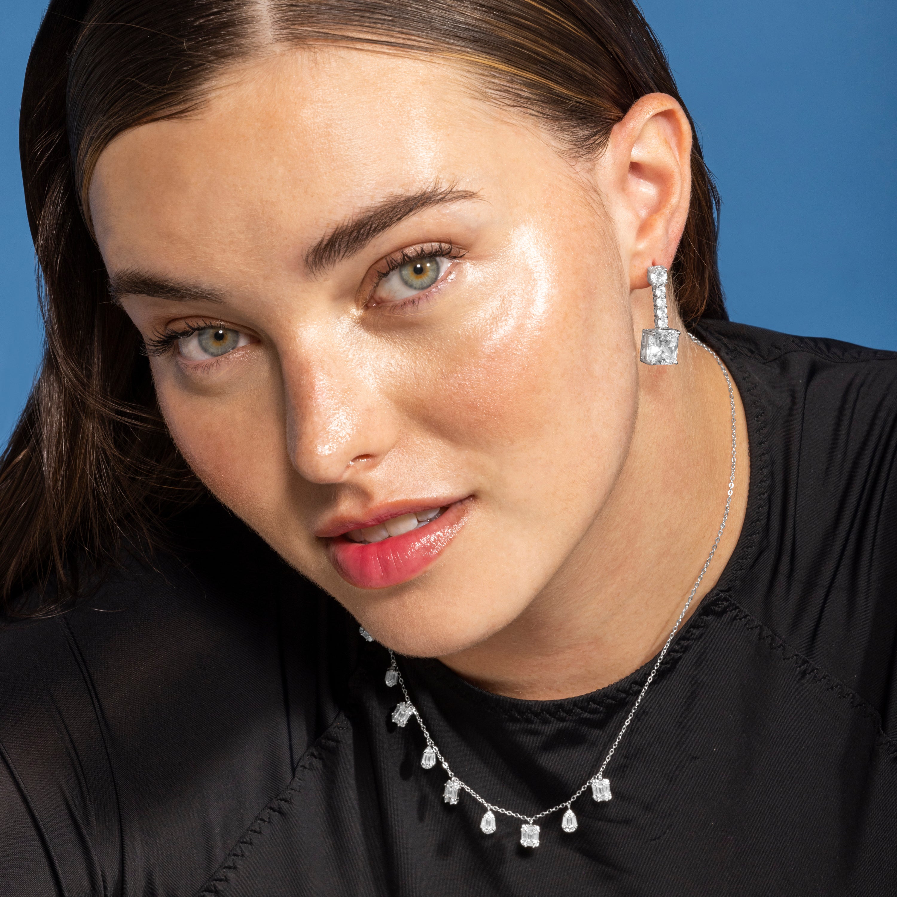 Pendientes de Plata de Ley 925 y Circonita Brillante acabado en rodio - Asju