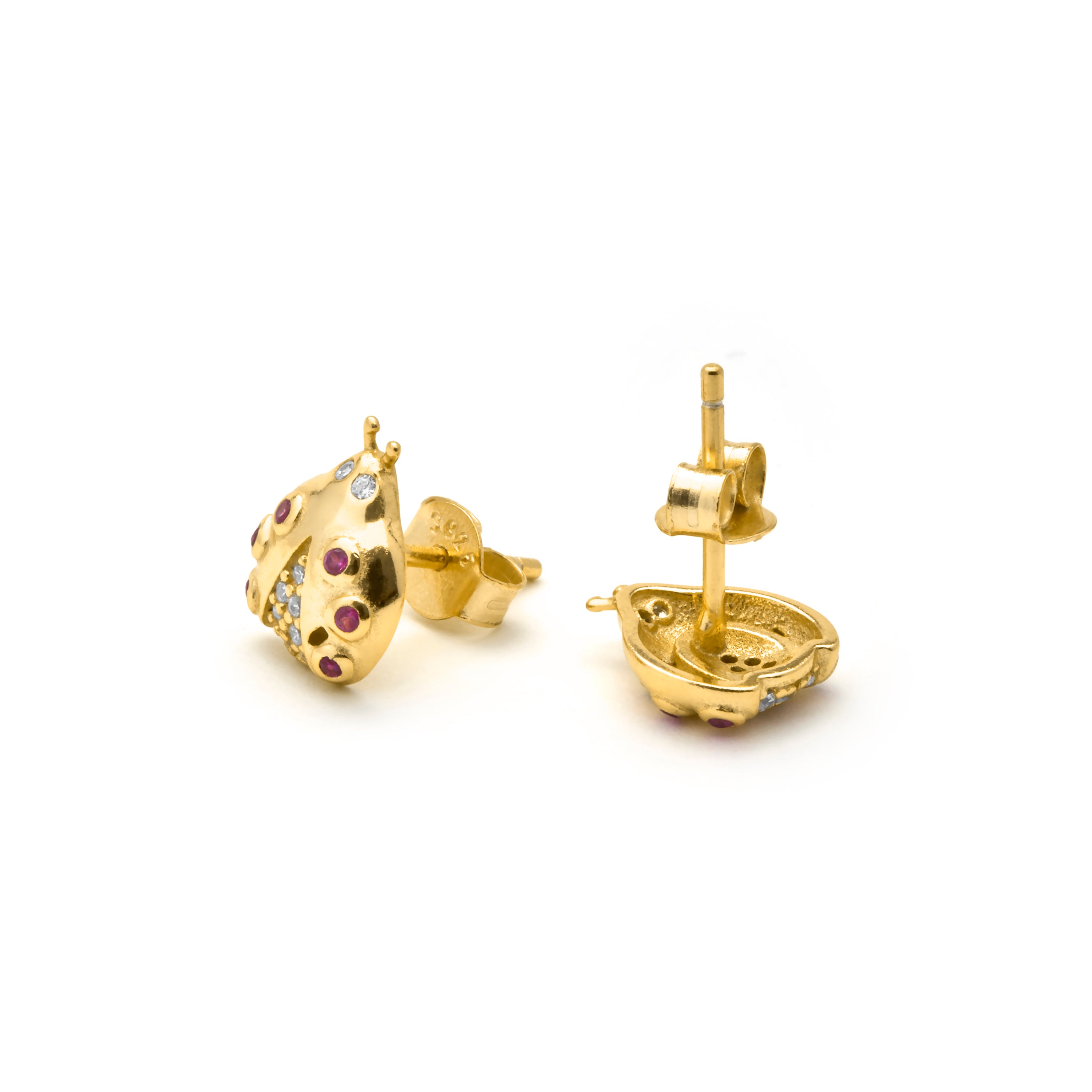 Pendientes de Plata de Ley 925 y Circonita Rubí acabado en oro amarillo 18k - Shoili