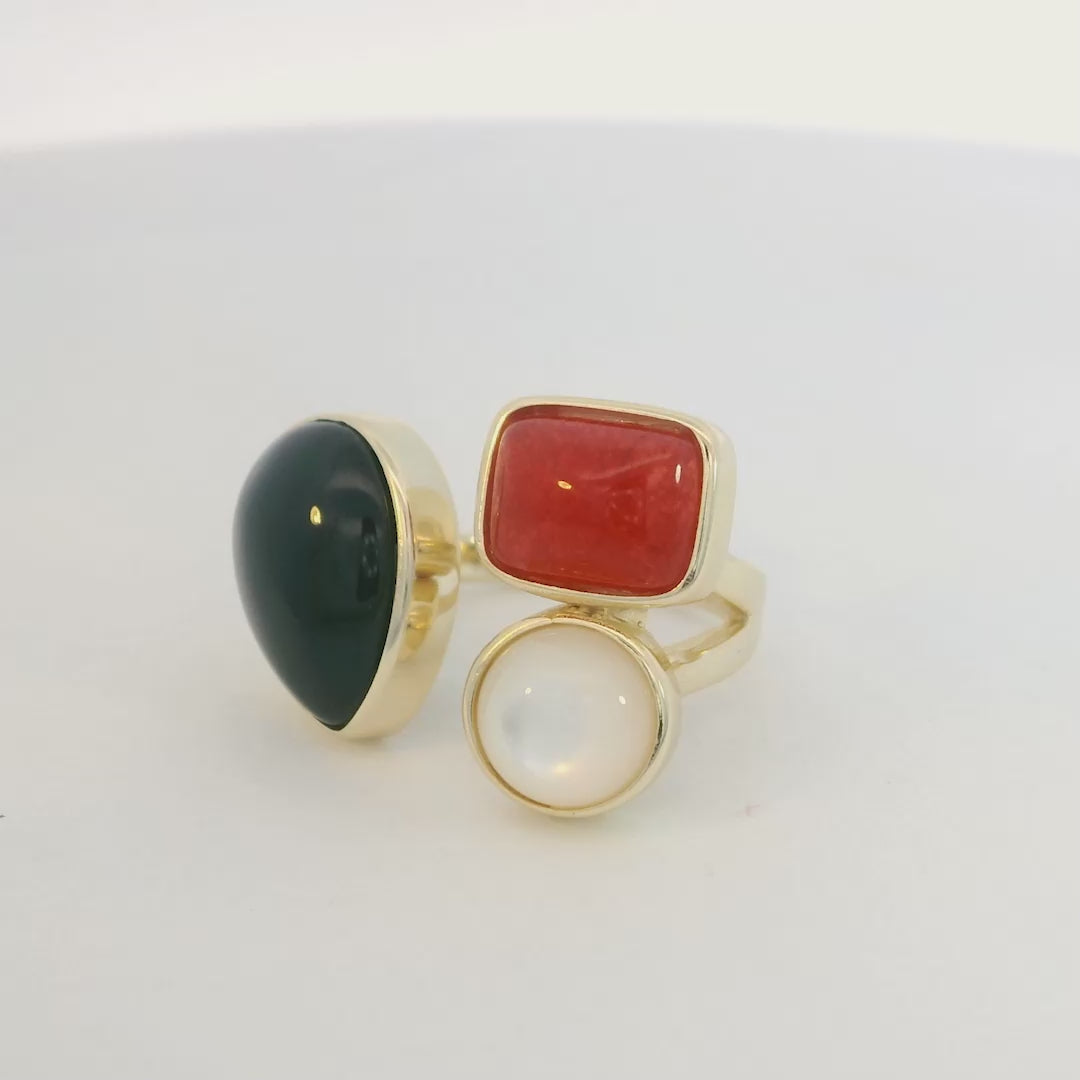 Miya ring van 925 sterling zilver en hydrothermisch onyx kwarts met een afwerking van 18k geelgoud