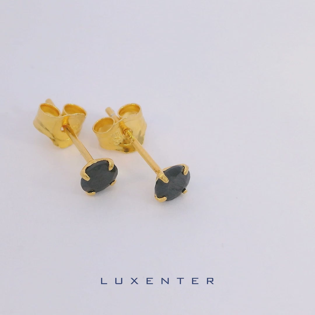 925 Sterling Zilveren Oorbellen met Onyx Zirkonia afgewerkt in 18K Geelgoud - Otieno