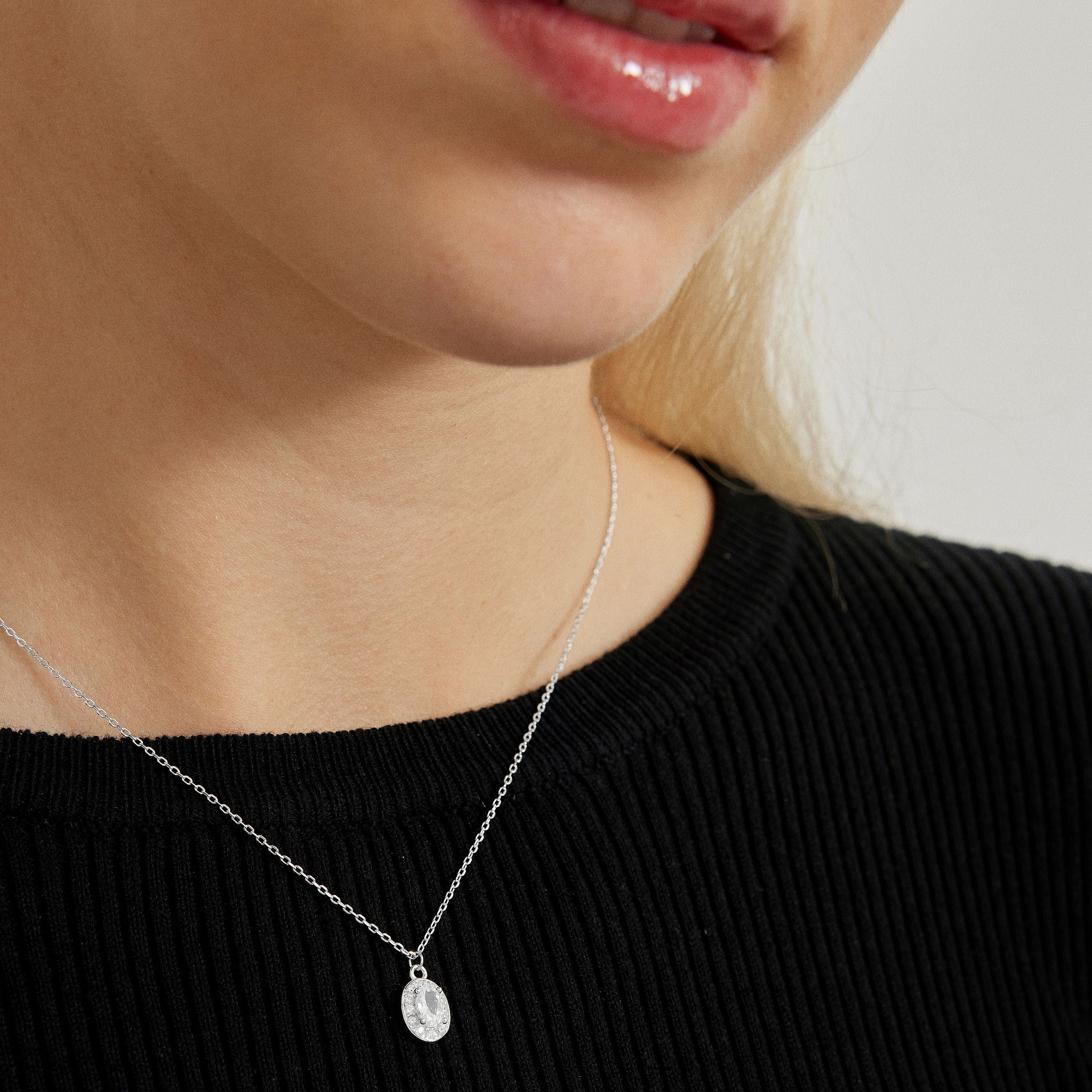 Collar Tikna de Plata de Ley 925 y Circonita Brillante acabado en rodio. Essential encarna la sencillez refinada, piezas atemporales con líneas suaves y el brillo adicional de las circonitas. Joyas básicas sin pretensiones que son perfectas para el uso diario, pero también pueden funcionar en ocasiones especiales.