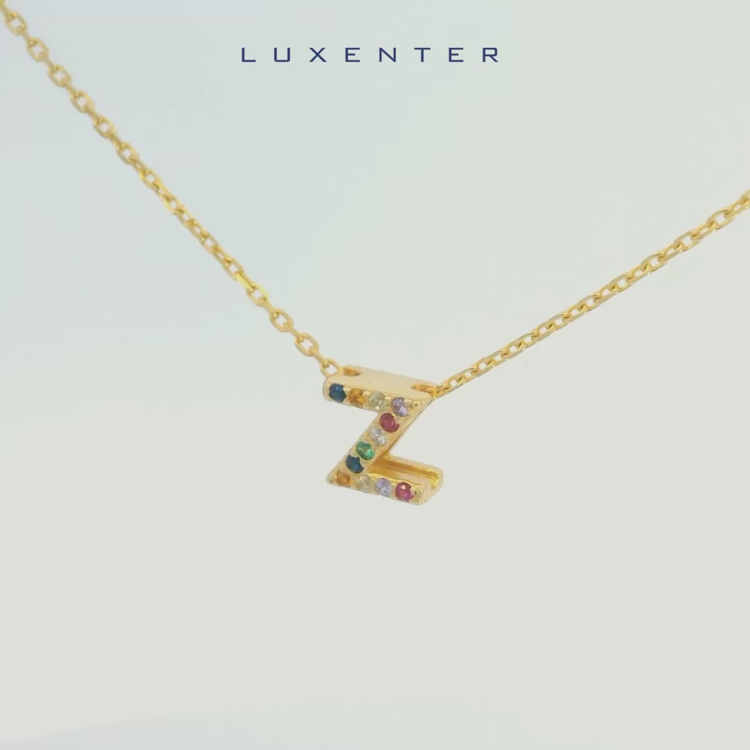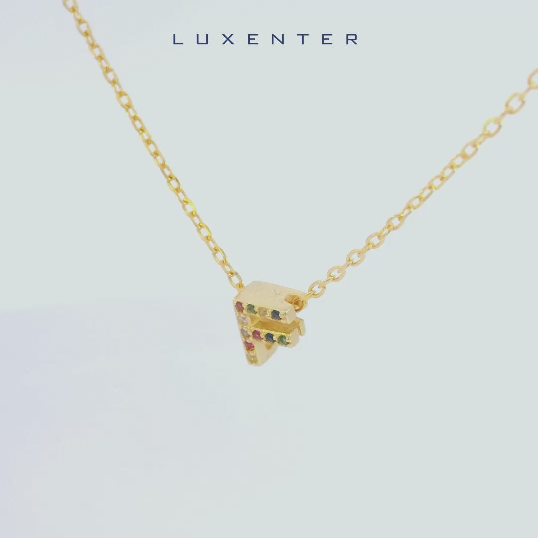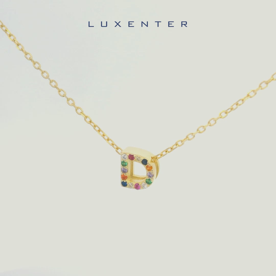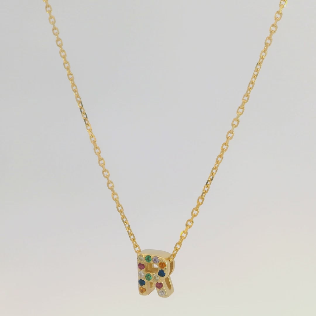 Collar alphabet de plata de ley 925 y circonita multicolor con acabado en baño de oro amarillo de 18 quilates. Además de lograr estilismos para trotar por el mundo nuestros diseños marcan la diferencia y consiguen que esa diferencia sea radical. Diseños realizados cuidadosamente a mano con materiales y circonitas brillantes de primera calidad dan vida a un Alfabeto de diferentes tamaños.