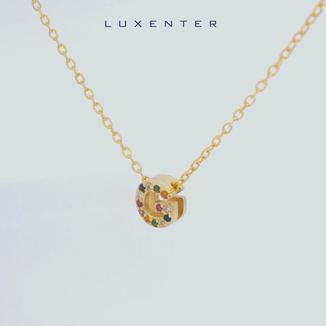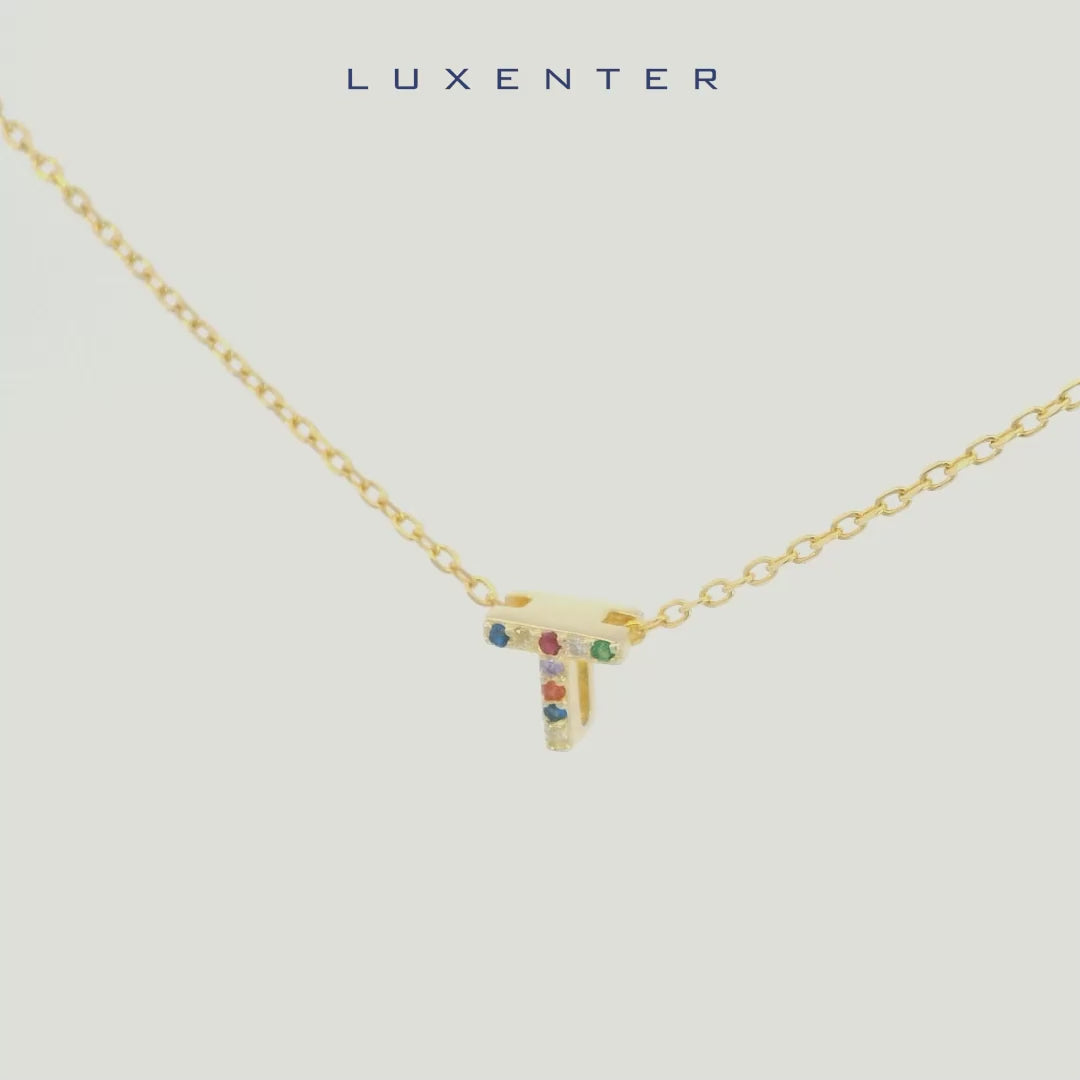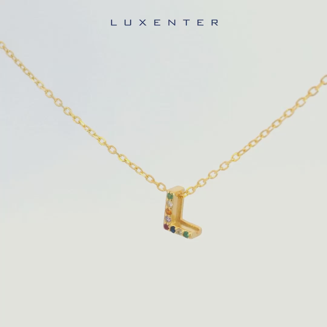 Collar alphabet de plata de ley 925 y circonita multicolor con acabado en baño de oro amarillo de 18 quilates. Además de lograr estilismos para trotar por el mundo nuestros diseños marcan la diferencia y consiguen que esa diferencia sea radical. Diseños realizados cuidadosamente a mano con materiales y circonitas brillantes de primera calidad dan vida a un Alfabeto de diferentes tamaños.