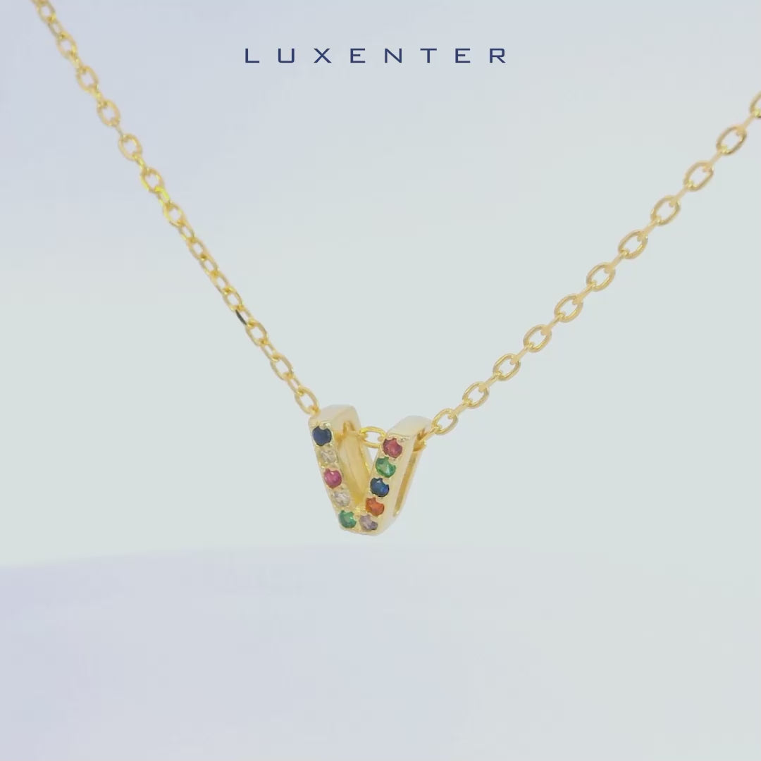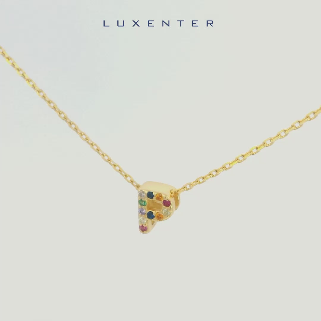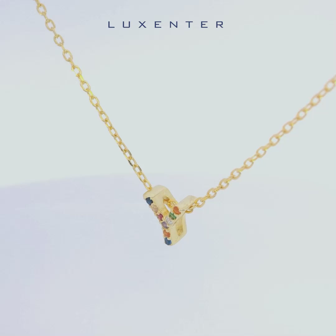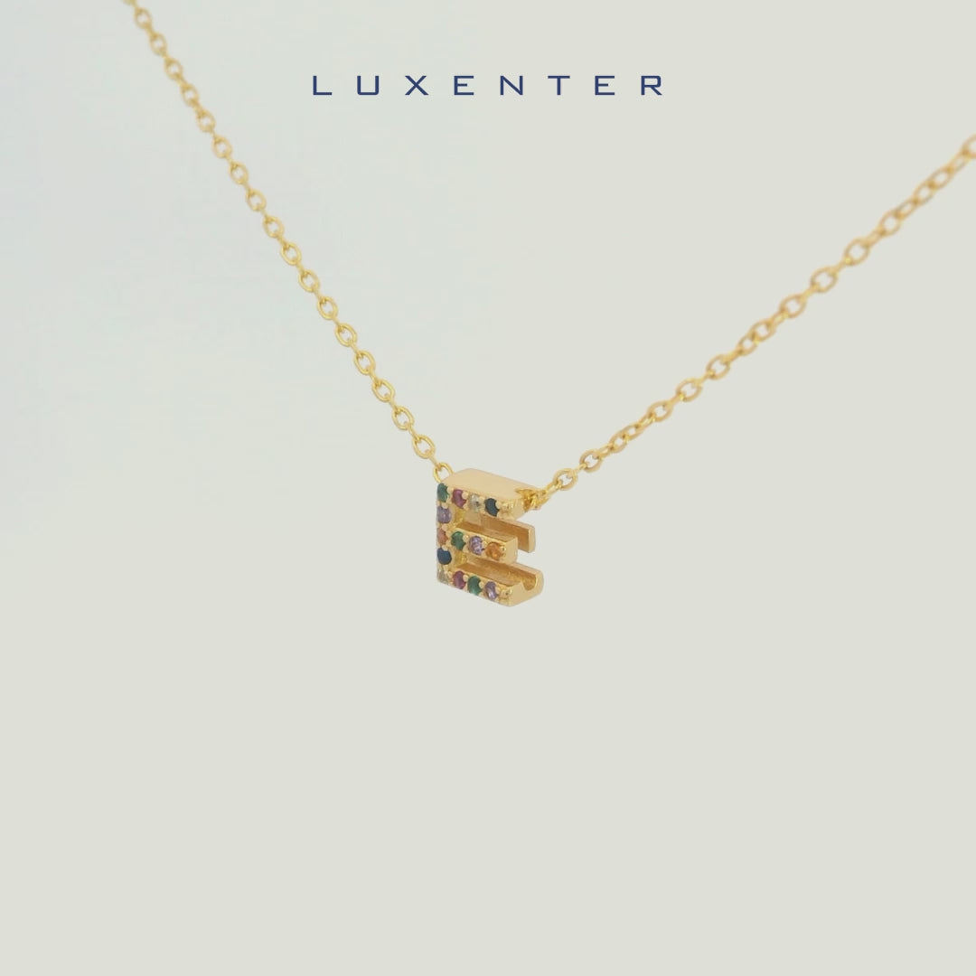 Collar alphabet de plata de ley 925 y circonita multicolor con acabado en baño de oro amarillo de 18 quilates. Además de lograr estilismos para trotar por el mundo nuestros diseños marcan la diferencia y consiguen que esa diferencia sea radical. Diseños realizados cuidadosamente a mano con materiales y circonitas brillantes de primera calidad dan vida a un Alfabeto de diferentes tamaños.
