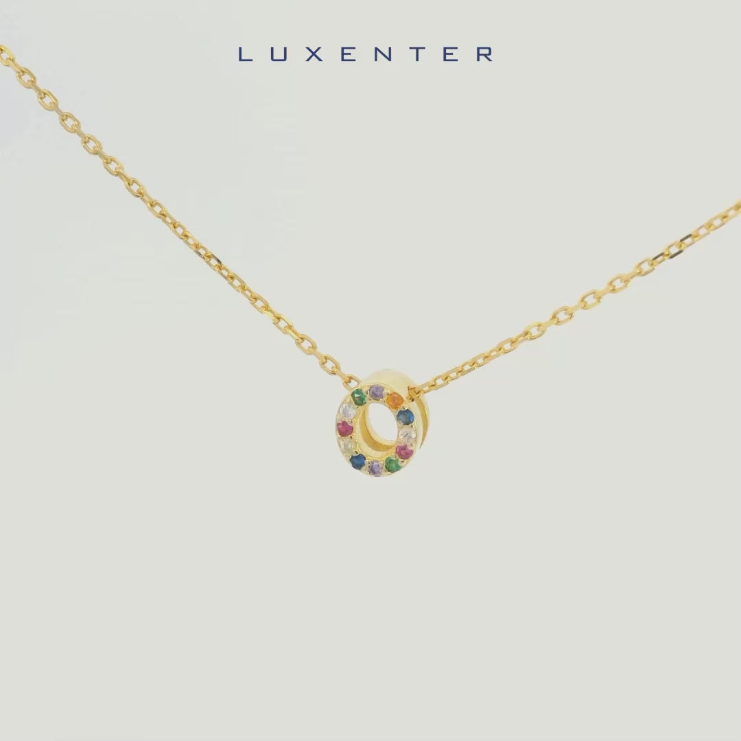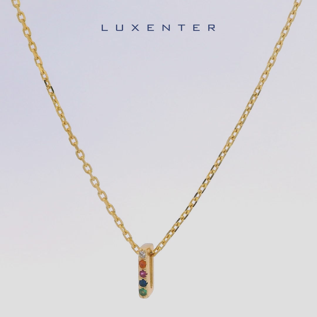 Collar de Plata de Ley 925 con Circonita Multicolor acabado en oro amarillo 18K - Alphabet