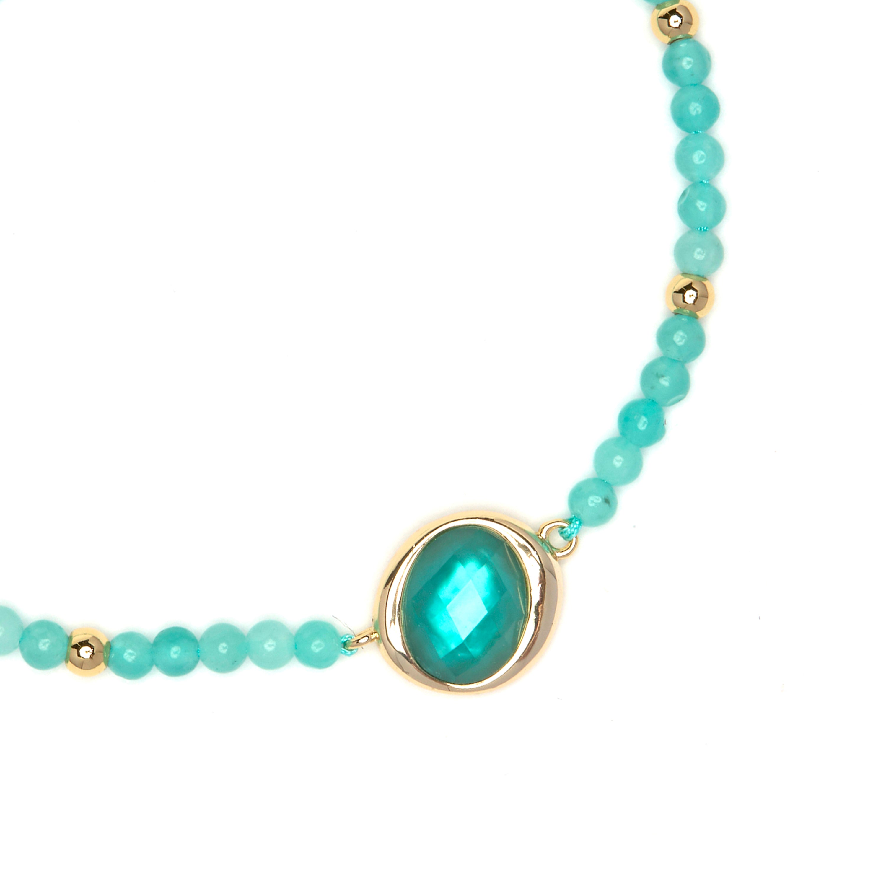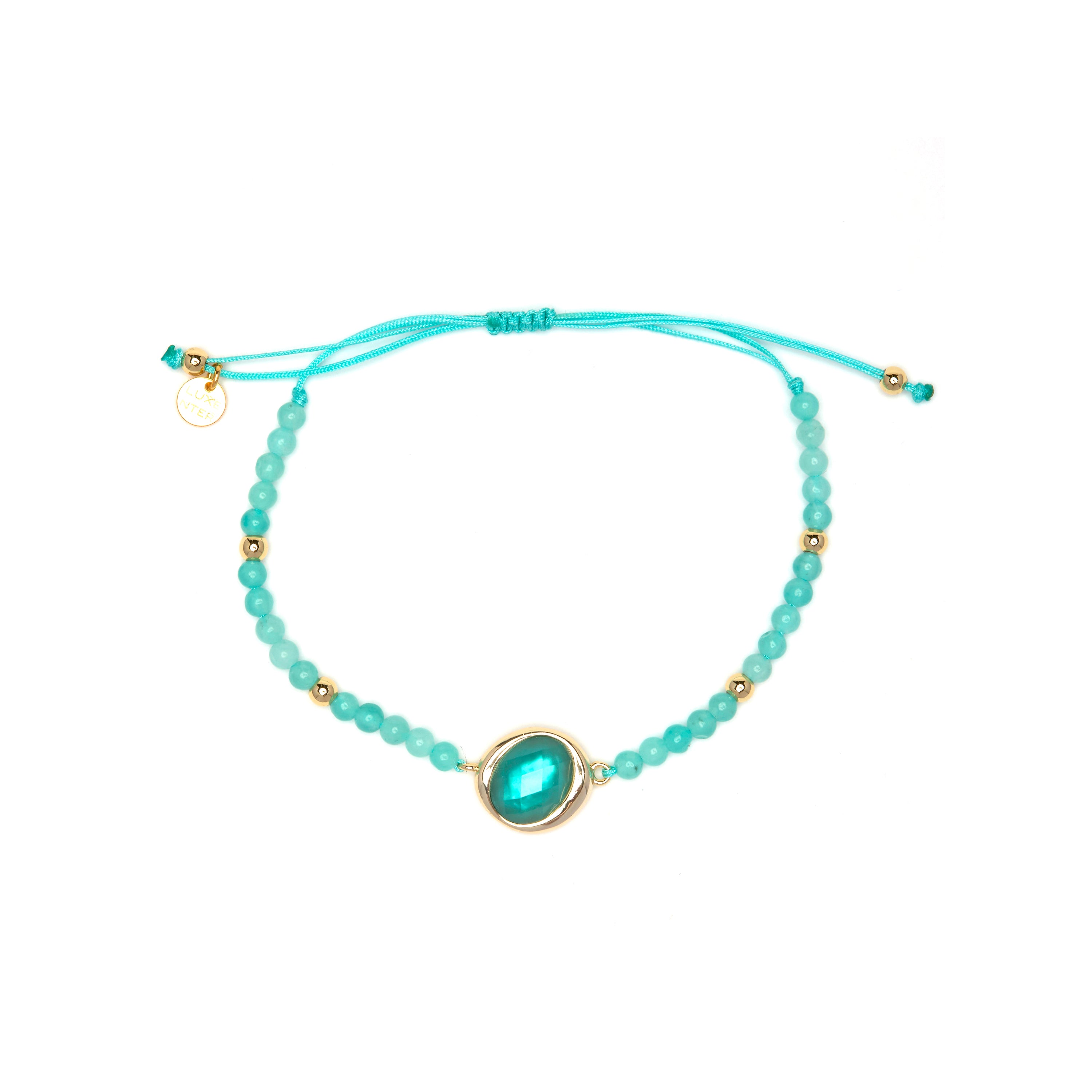 Pulsera Alqua de Plata de Ley 925 y Doblete Madreperla / Cuarzo Hidrotermal Verde acabado en Oro Amarillo 18k